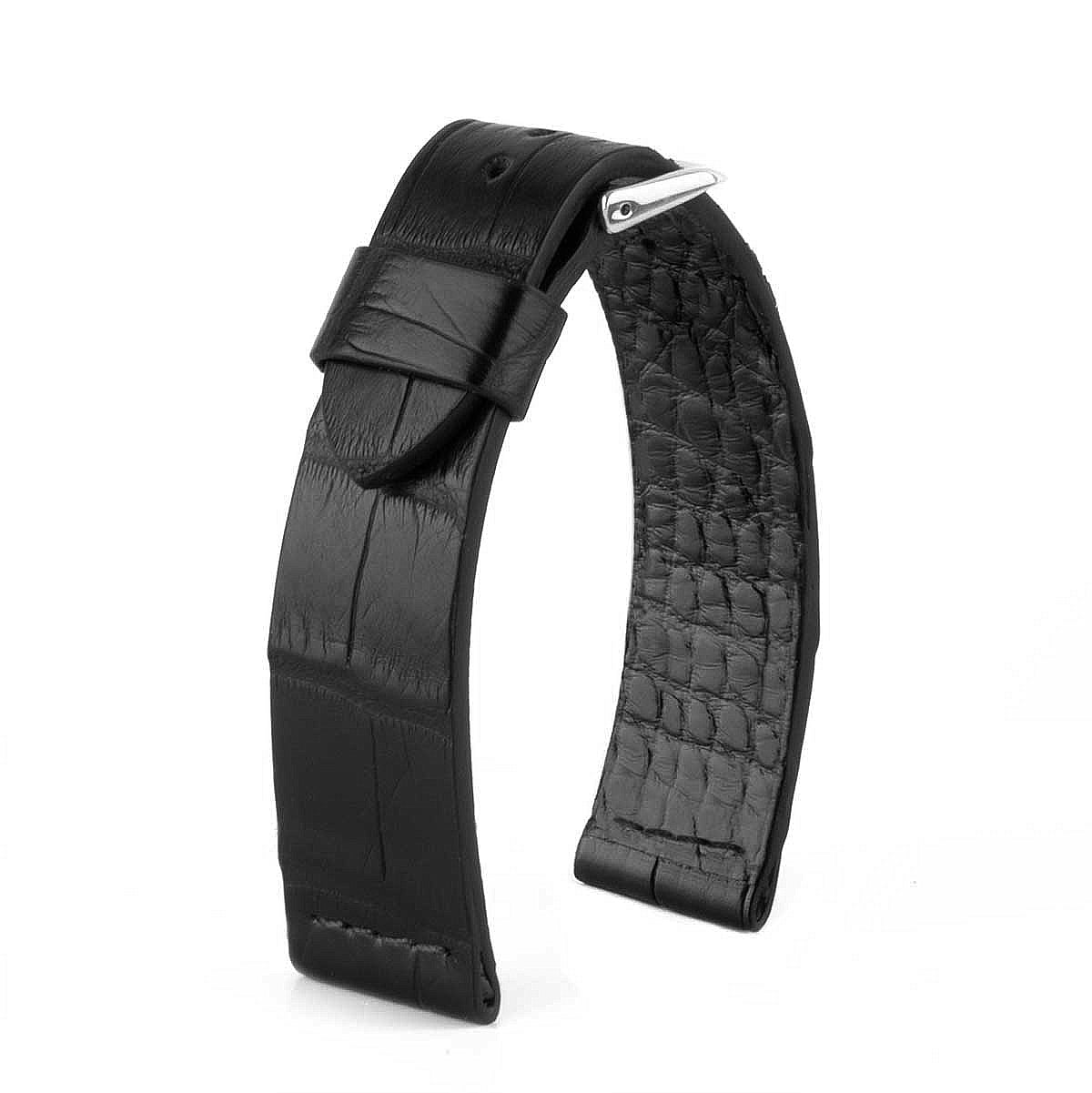 Classic watch strap in black alligator. Lining round scales alligator, thickness at the watch 2,5mm, stitching and edges tone on tone.
