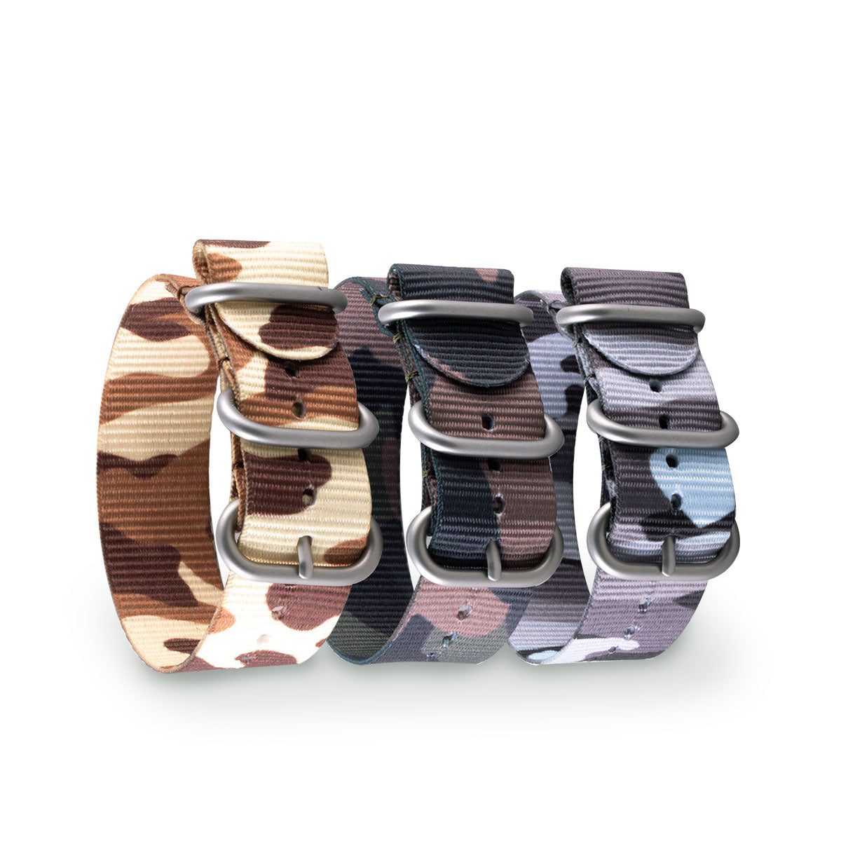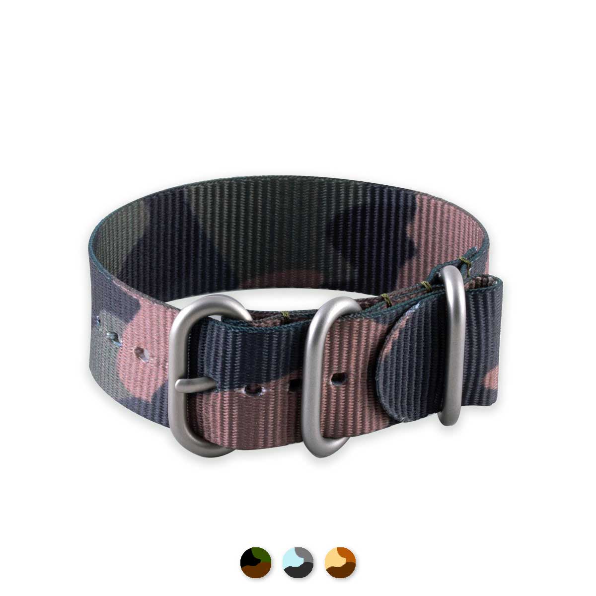 Zulu nato 3 rings watchstrap - Camo nylon / fabric (brown, brown/green, grey)