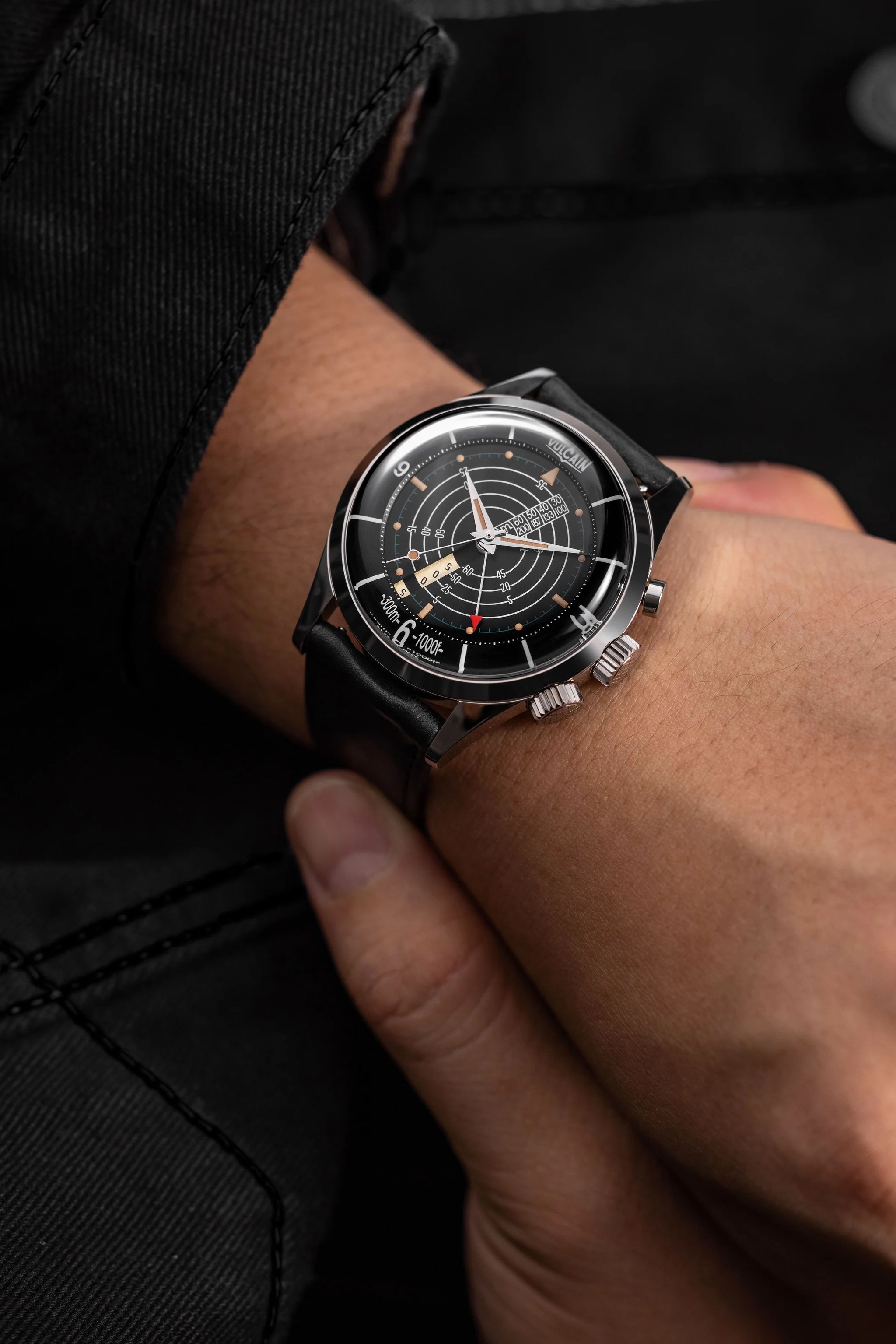 In 1961, Vulcain could boast of being the only watch Manufactures to offer a diver’s watch equipped with an aquatic alarm – in other words, an alarm that could also be heard underwater. Thanks to the ‘triple case back that acted as a resonance chamber, the Cricket Nautical reliably signaled when it was time to head back up. And it’s a performer on so many other levels, too. The purists among scuba diving enthusiasts, fans of mental arithmetic and no-stop tables, will be partial to its functional possibilities; lovers of vintage timepieces, on the other hand, will surely take to its particular aesthetic.