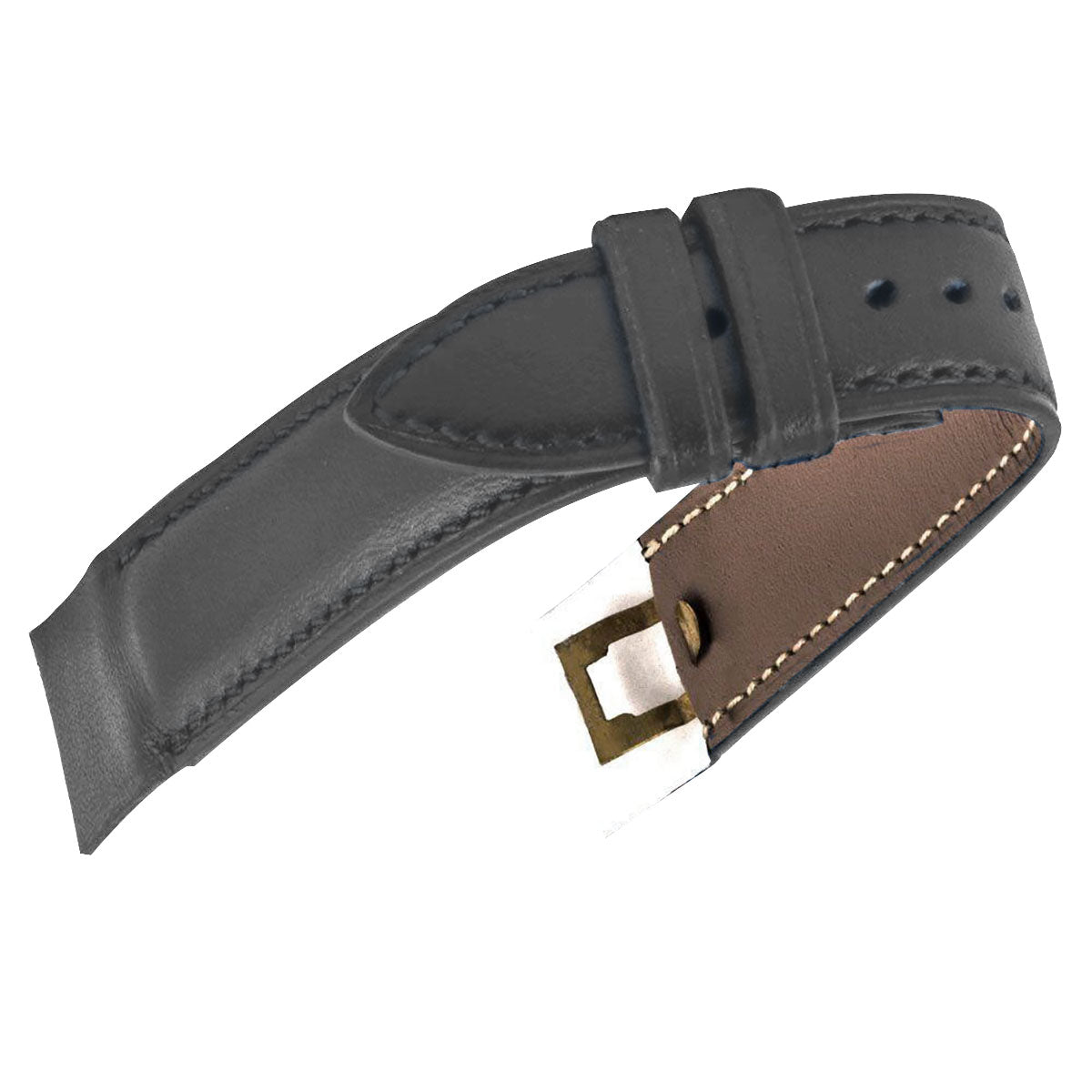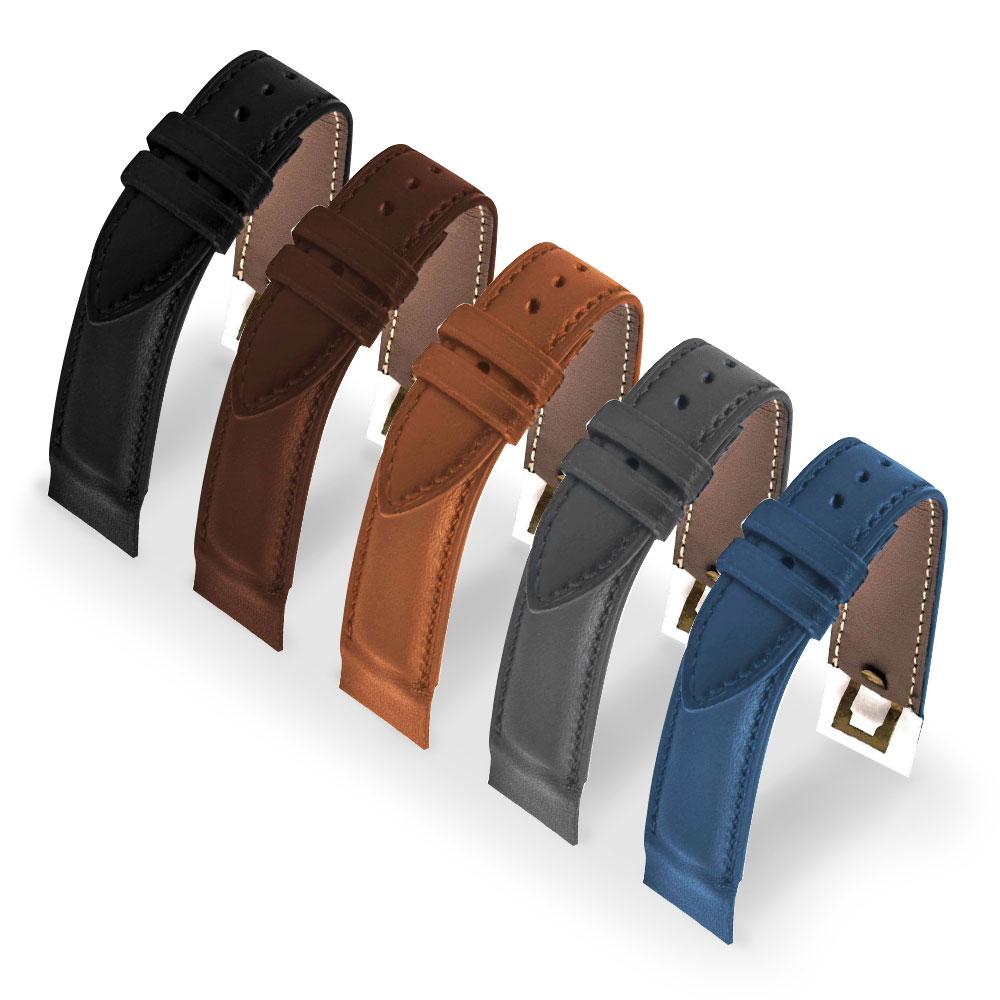 Bracelet de montre à attaches ouvertes en cuir de veau. Bombé 3,5mm. Convient aux montres anciennes ou vintage à anses fixes soudées à la pompe.