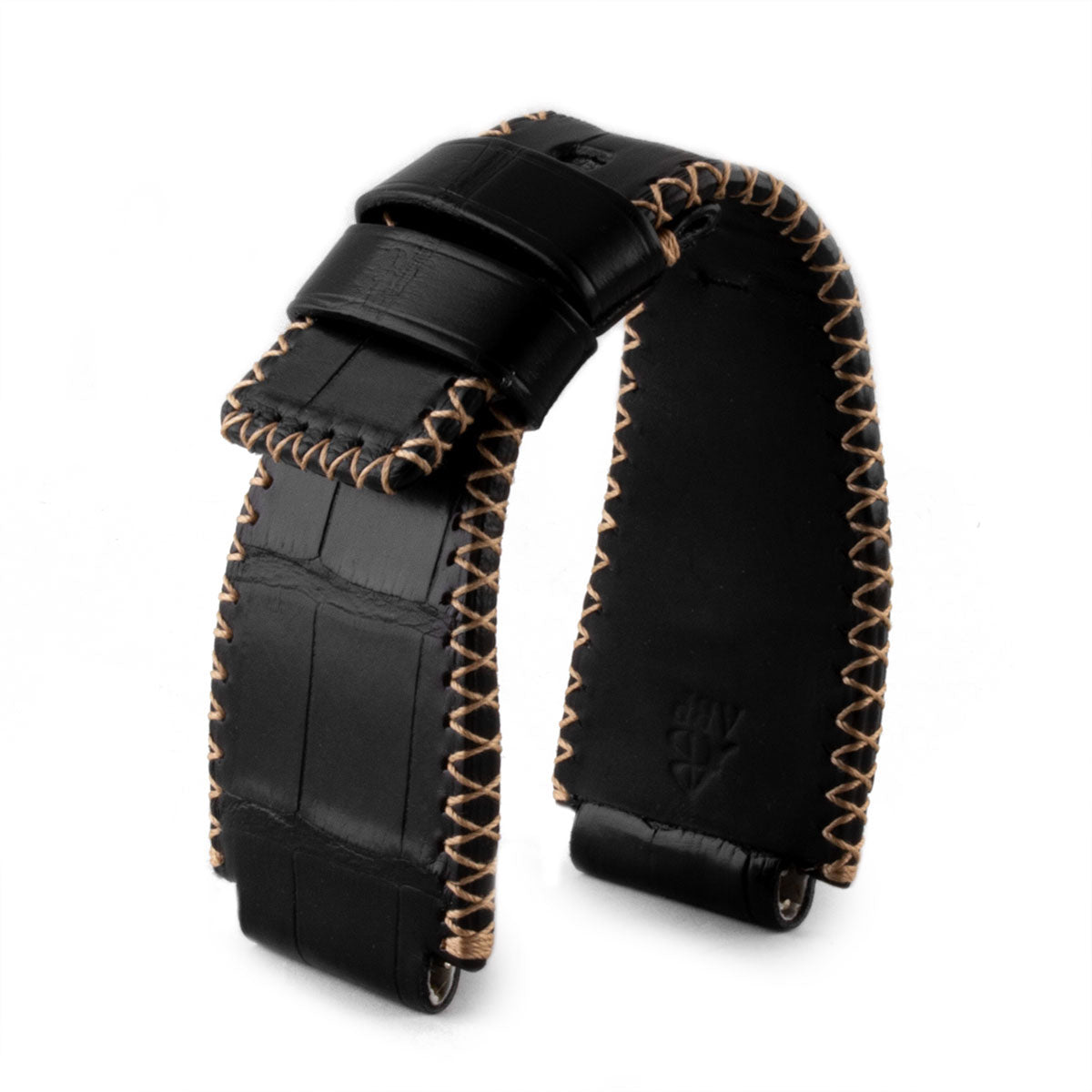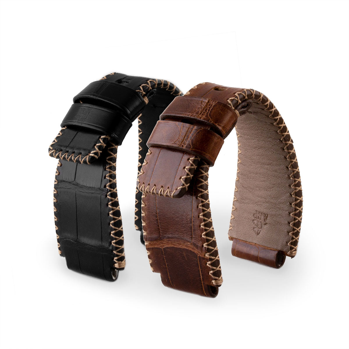 Bell & Ross - Bracelet-montre cuir qualité premium - Alligator / crocodile couture tribale (noir / marron, marron / marron)