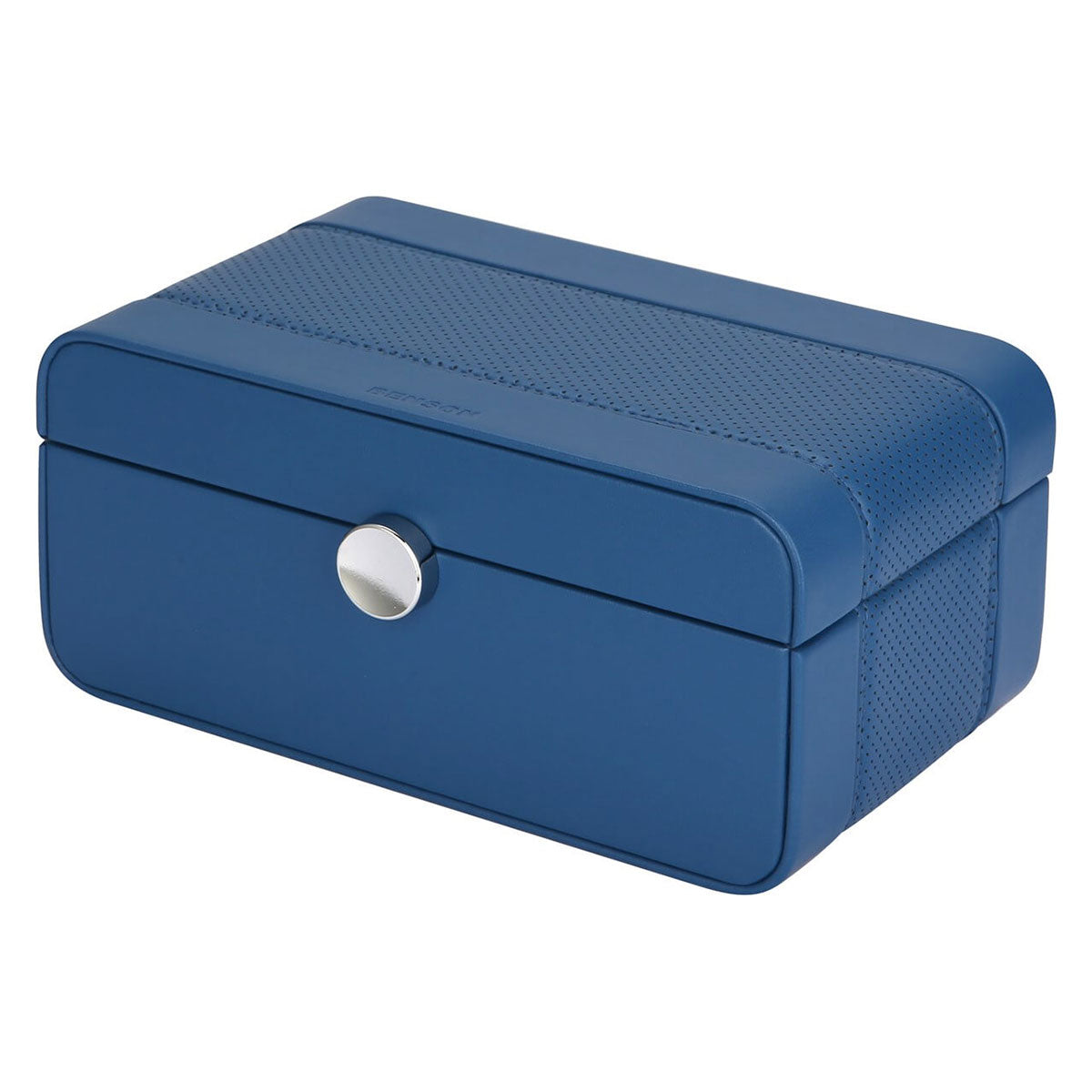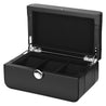 Ces boîtes à montres sont fabriquées en cuir et disponibles dans les couleurs noir, brun foncé, bleu et fibre de carbone. Cette boîte à montres Benson Black Series LWB.3 Black convient au rangement de 3 montres. L'intérieur de la boîte à montres est recouvert d'un tissu doux pour une protection optimale des montres. La serrure sur le devant permet de fermer la boîte à montres. La belle finition se reflète dans les fines coutures et le logo estampé dans le cuir.