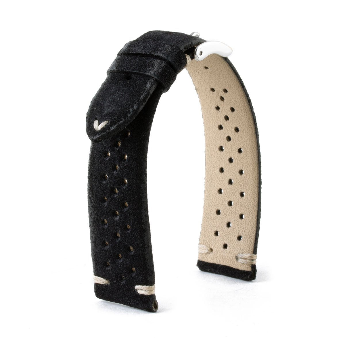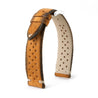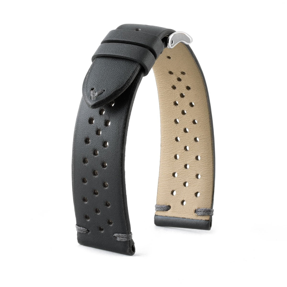 Bracelet montre en cuir véritable. Couture point d'arrêt. Trous sport driver. Doublure veau classique. Epaisseur 3mm.