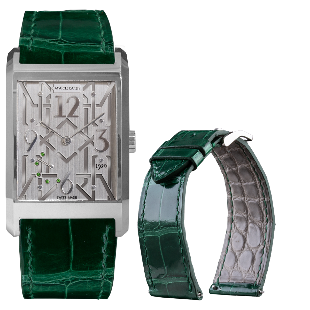 Bracelet montre cuir premium - Anatole Baker - Alligator premium brillant vert