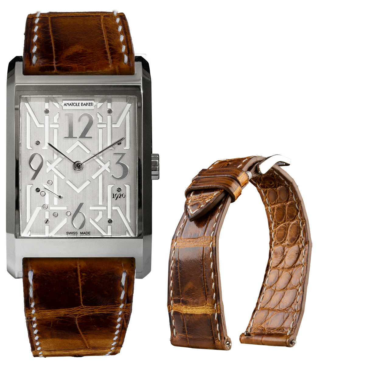 Bracelet montre cuir premium - Anatole Baker - Alligator premium waxé / radika marron