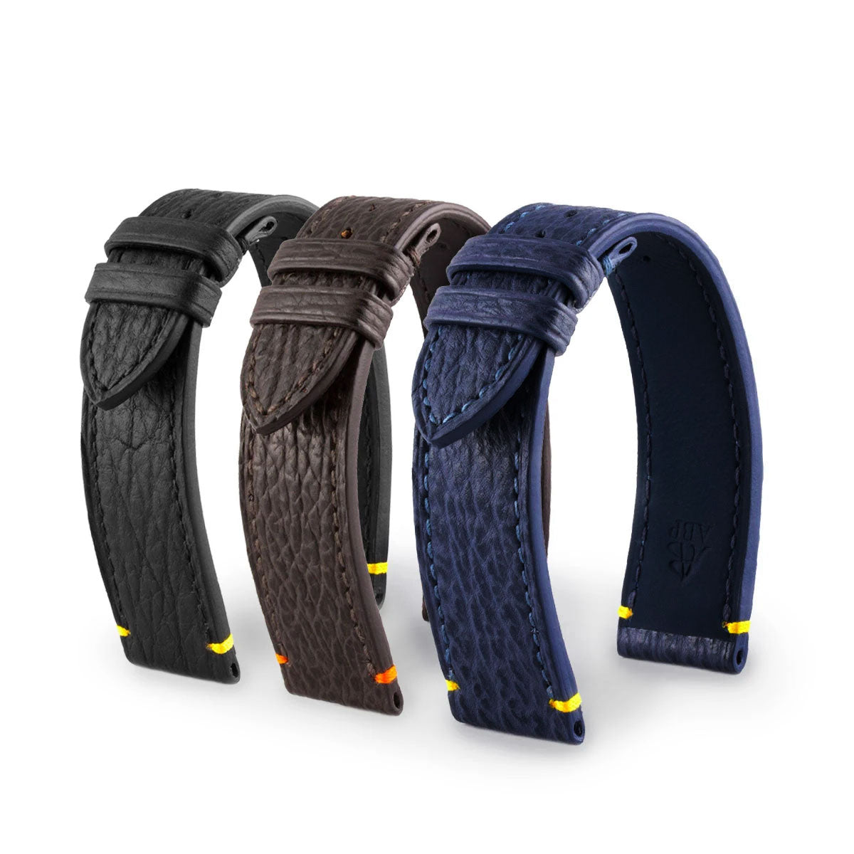 Bracelet Diver - Bracelet montre cuir qualité premium - Requin (noir / jaune, marron / orange, bleu / jaune)