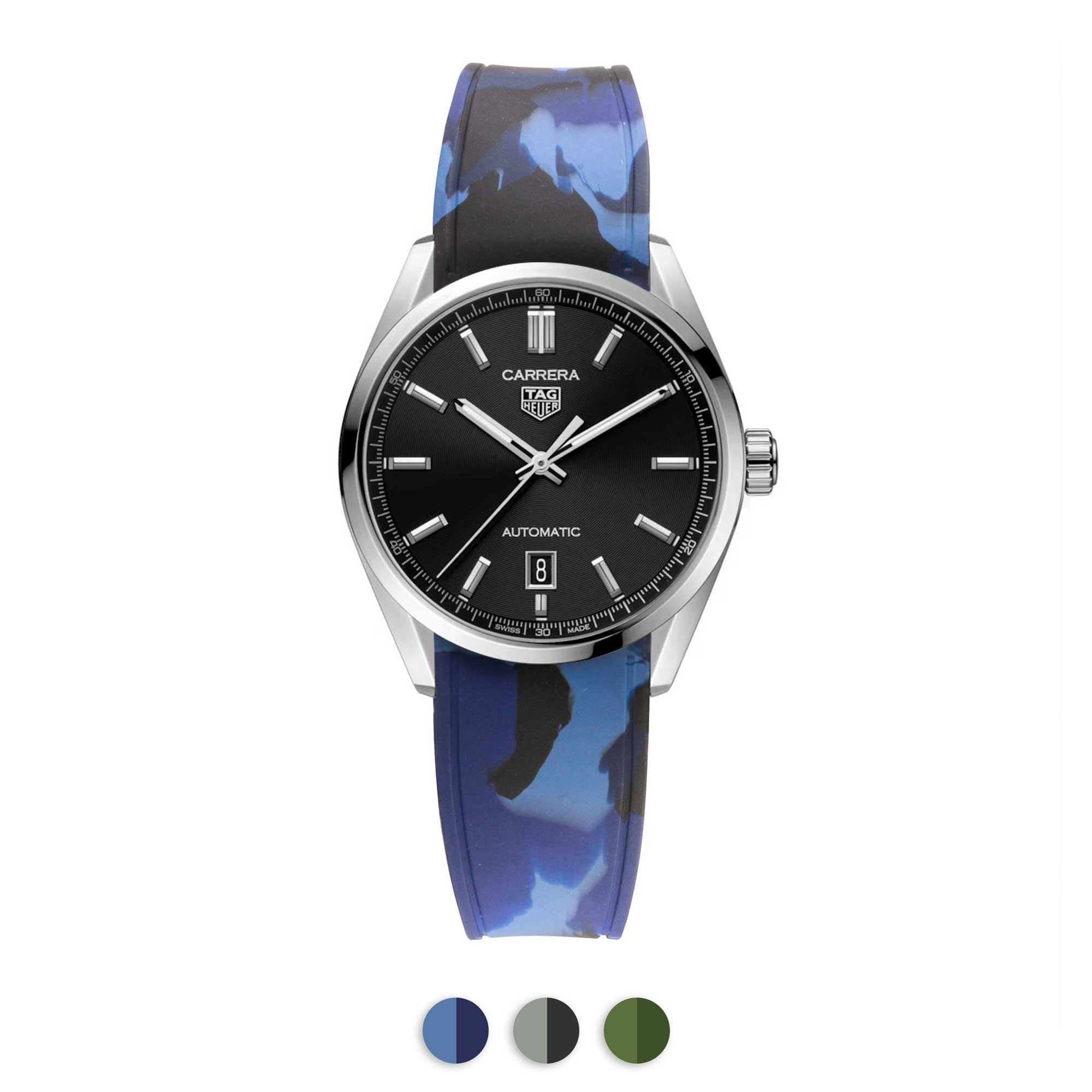Tag Heuer Carrera - Bracelet montre caoutchouc intégré - Rubber camo (bleu, gris, vert)