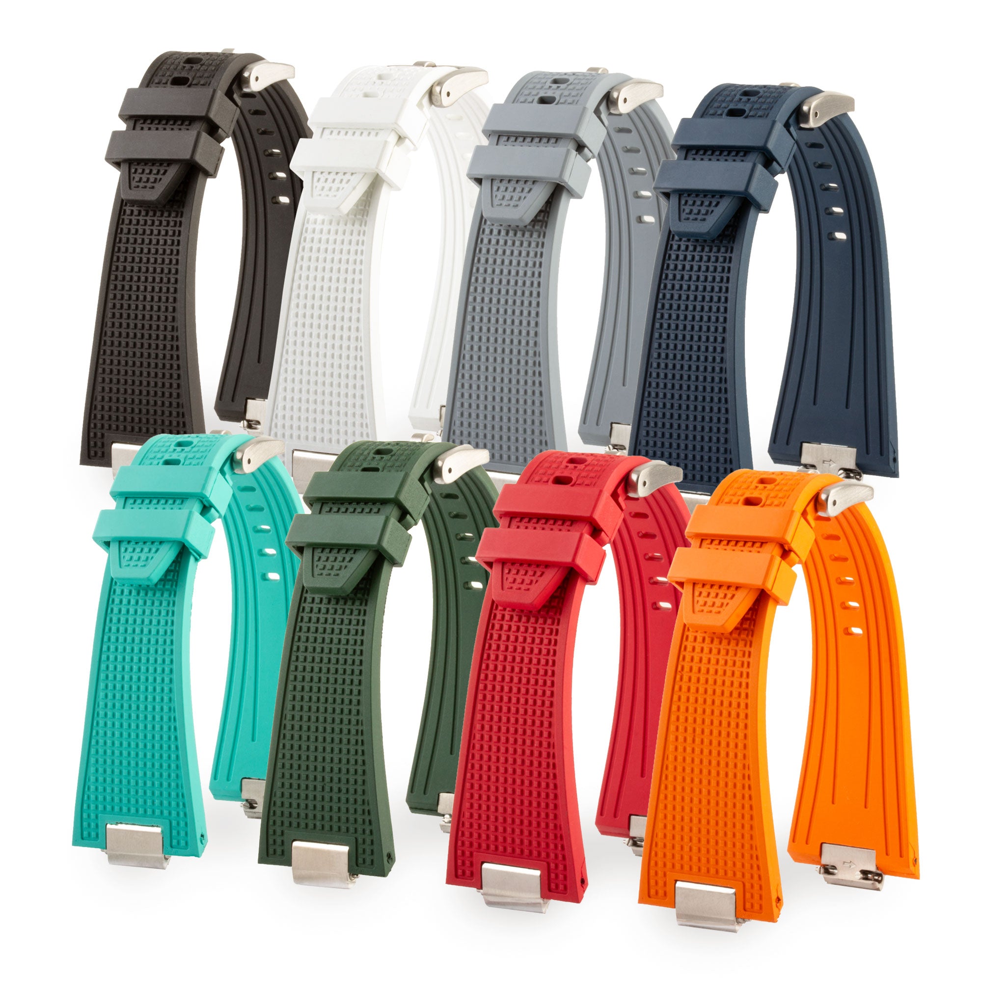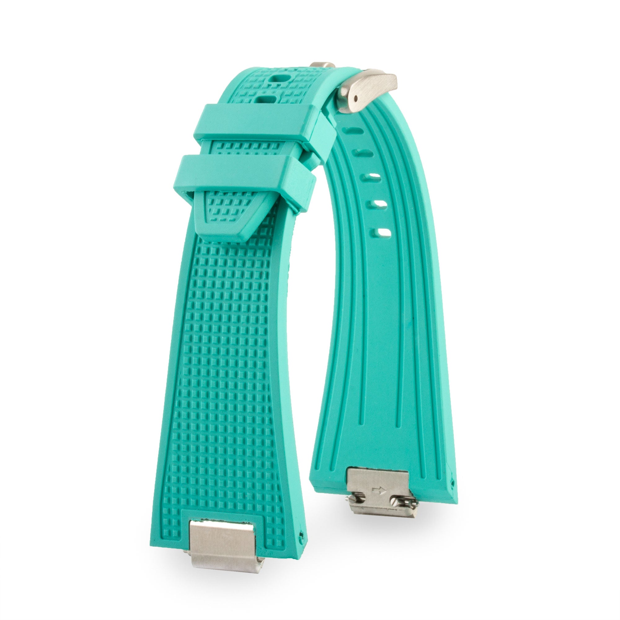 Bracelet en caoutchouc / rubber avec motif guilloché, conçu spécifiquement pour s'adapter au modèle de montre Tissot PRX. Chaque bracelet s'adapte aux couleurs de cadran de votre modèle de montre.