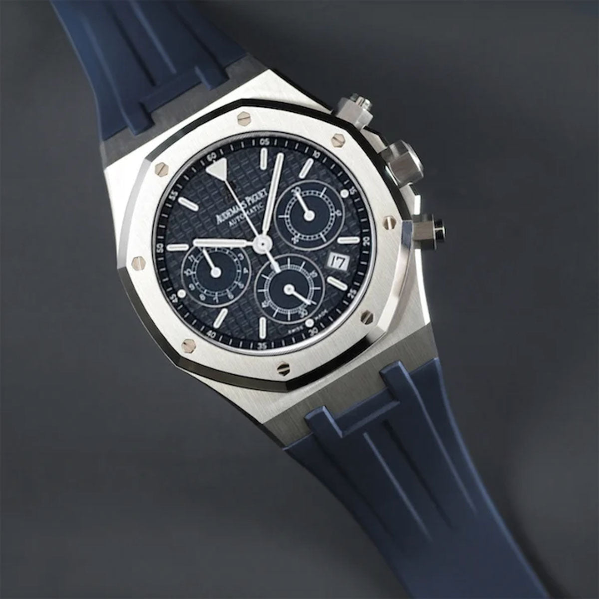 Bracelet en caoutchouc vulcanisé conçu pour parfaitement s’adapter a la Audemars Piguet 39mm (les modèles bracelet d'origine Alligator Cuir, Acier ou Or), avec un insert solide pour une integration bloquée sur le boitier de votre montre. Notre attache exclusive en Velcro Alfatex® offre une fermeture confortable et esthétique pour votre Royal Oak.
