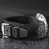 Bracelet-montre de type “combat” ou militaire en caoutchouc vulcanisé et de haute technologie. Fabriqué en "SwimSkin®", notre technologie exclusive, unique, brevetée et développée durant plusieurs années, nécessitant des machines d’extrême précision et des techniques d’ingénierie innovantes.