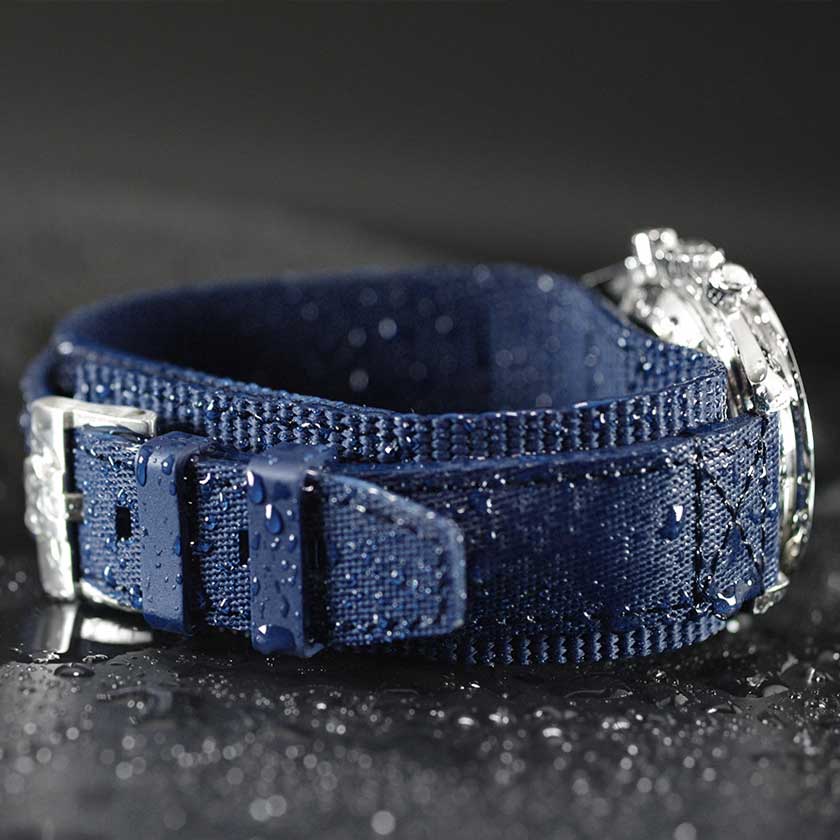 - Bien que ce bracelet semble être fait avec un matériel sensible à l'humidité, tel que le Kevlar®, il est en réalité 100% en CAOUTCHOUC. Il est donc imperméable et idéal pour toutes les activités sportives et aquatiques.