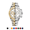 Bracelet en caoutchouc vulcanisé précisément calibré pour s'adapter à la Rolex Daytona (2022 et précédentes) sur bracelet Oyster en acier inoxydable, bicolore ou en or jaune (voir notes). Ce bracelet utilise la technologie « Blocked Integration », incorporant des inserts solides pour un montage impeccable et immobile sur le boîtier de la Daytona*.