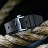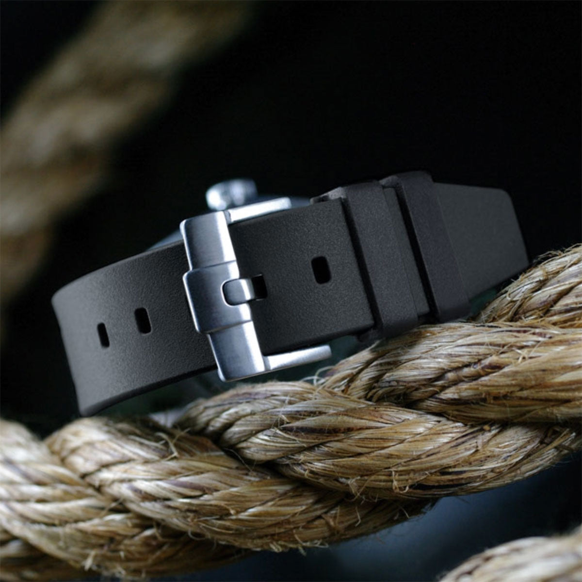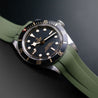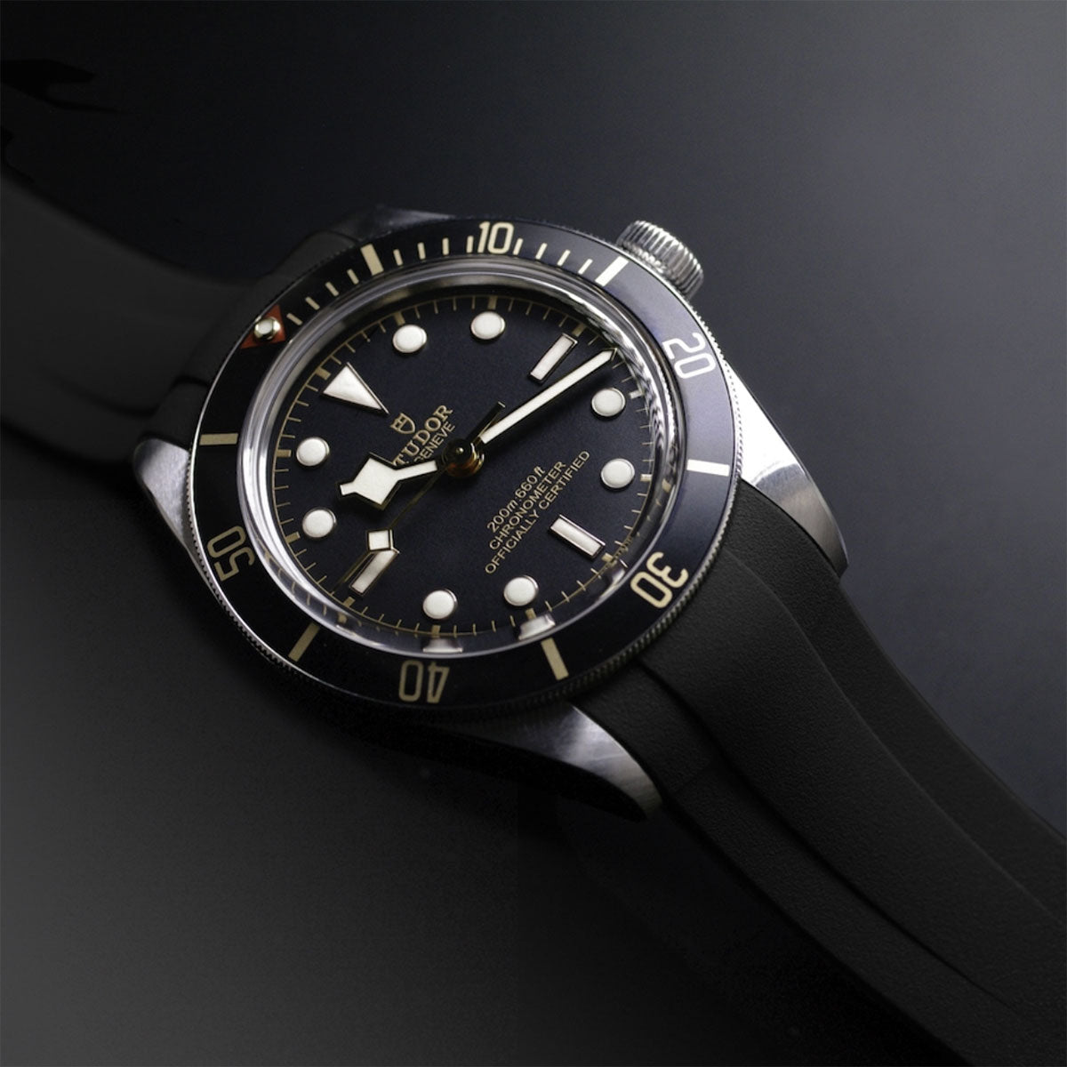 Ce bracelet en caoutchouc véritable vulcarboné est précisément calibré pour le montres Tudor Black Bay 58, utilisant un "Système d' Intégration Bloquée" pour une adaptation impeccable et immobile sur le boitier de la montre Fifty-Eight.