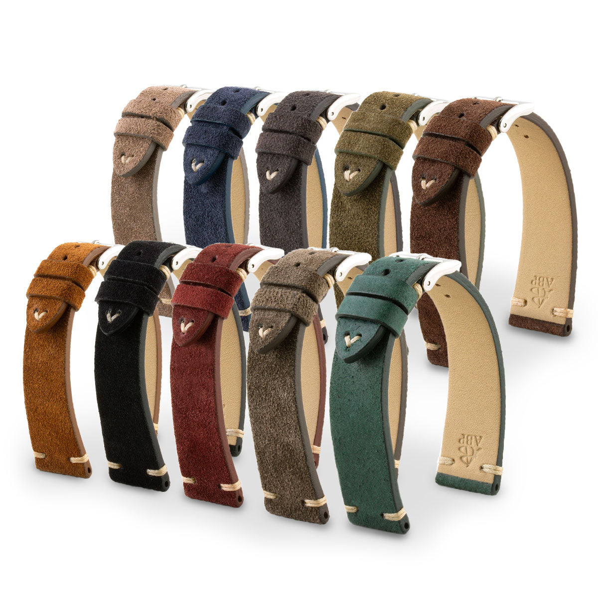 Bracelet Vintage - Bracelet montre cuir - Veau nubuck (noir, gris, marron, bleu, rouge, vert, kaki...)