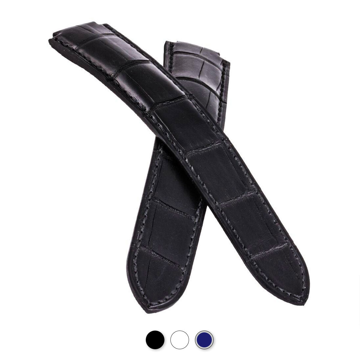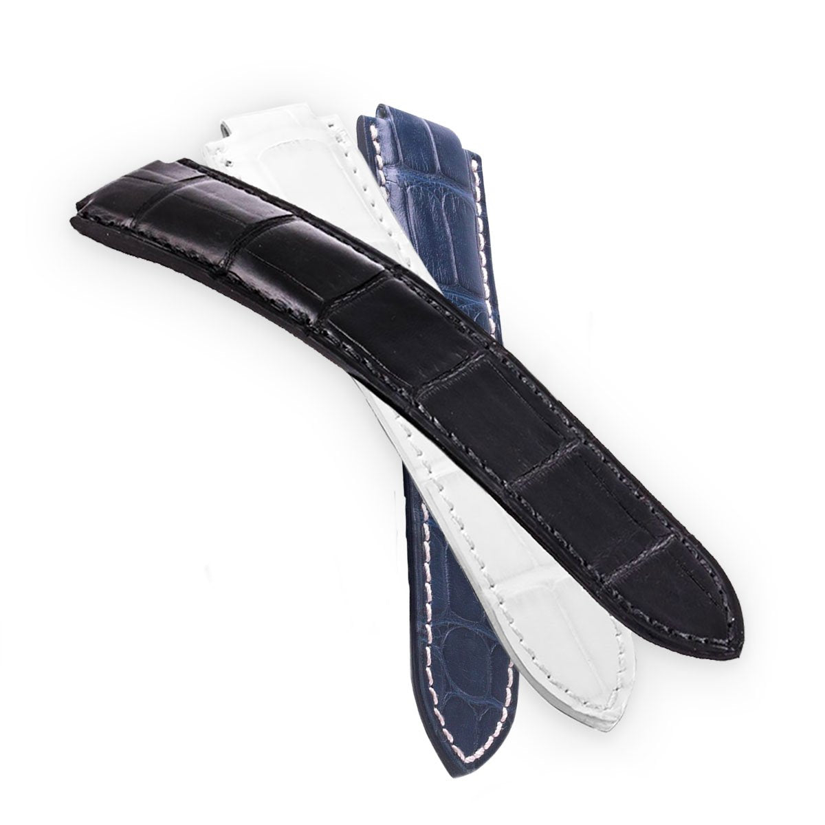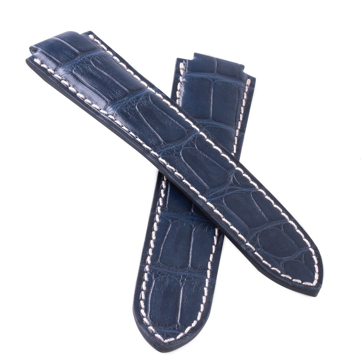 Bracelet montre Made in France en alligator, spécialement conçu et étudié pour sublimer votre montre Cartier Ballon Bleu. Epaisseur bombé 4mm.