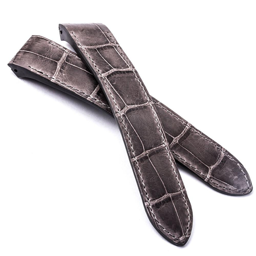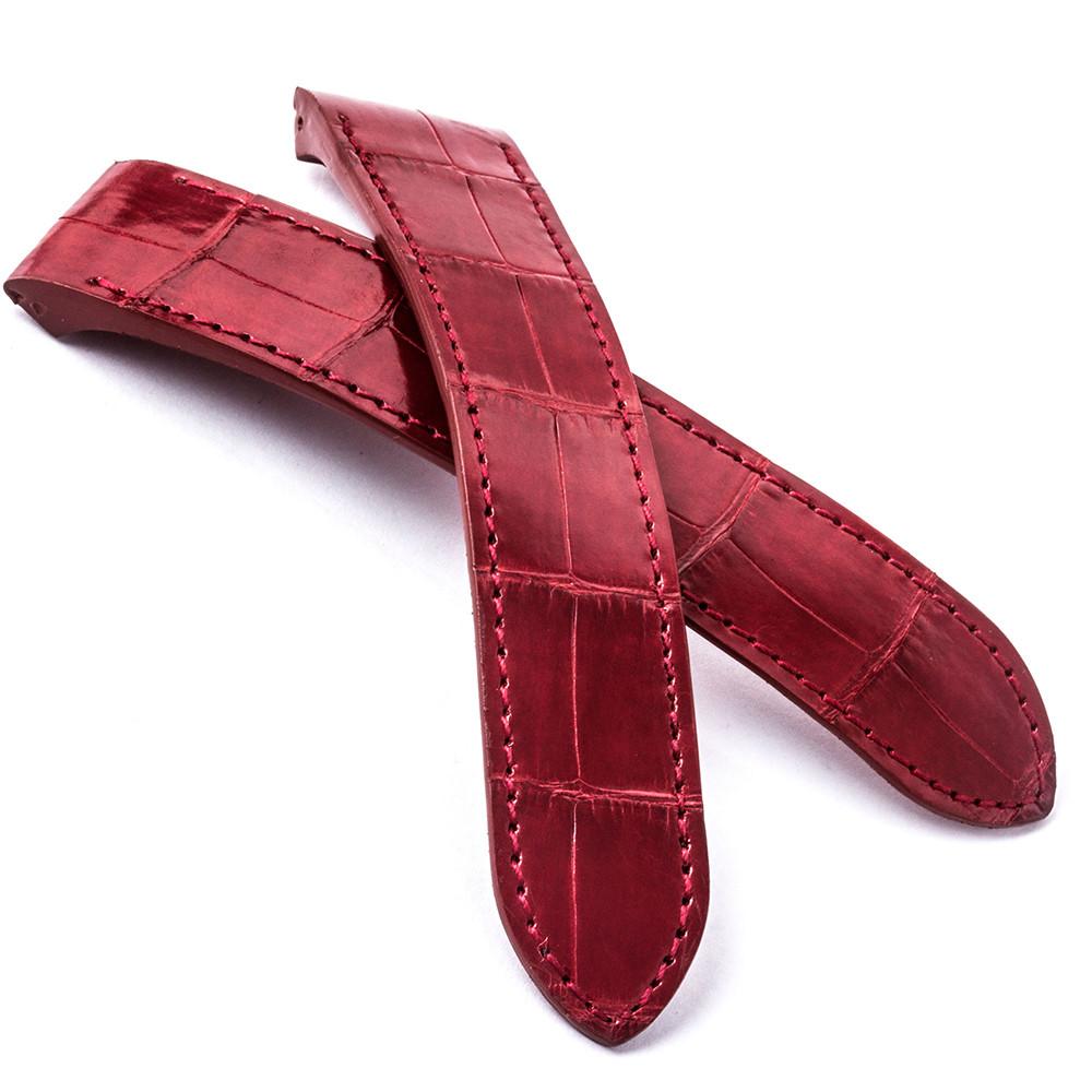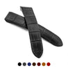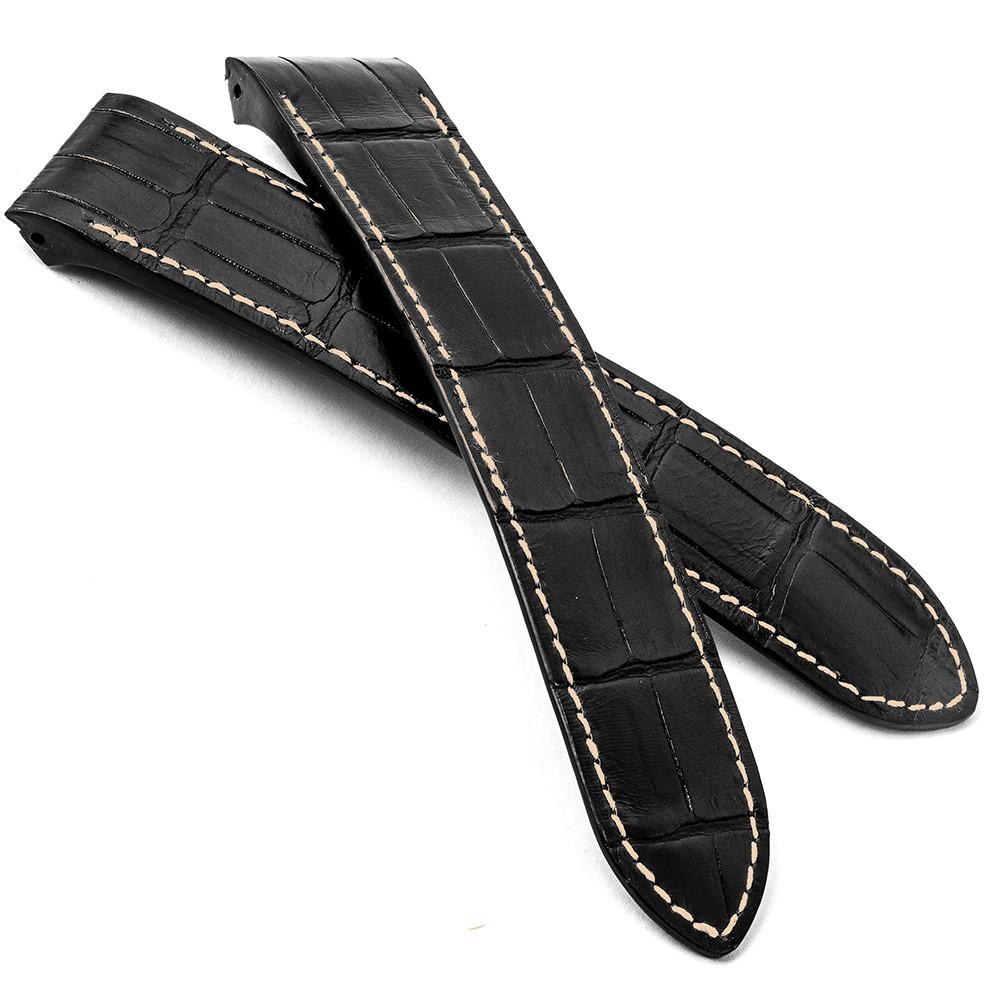 Bracelet de montre Made in France en cuir d’alligator véritable pour montre Cartier Santos 100 XL. Insert, doublure et âme en veau caoutchouté rubber noir.
