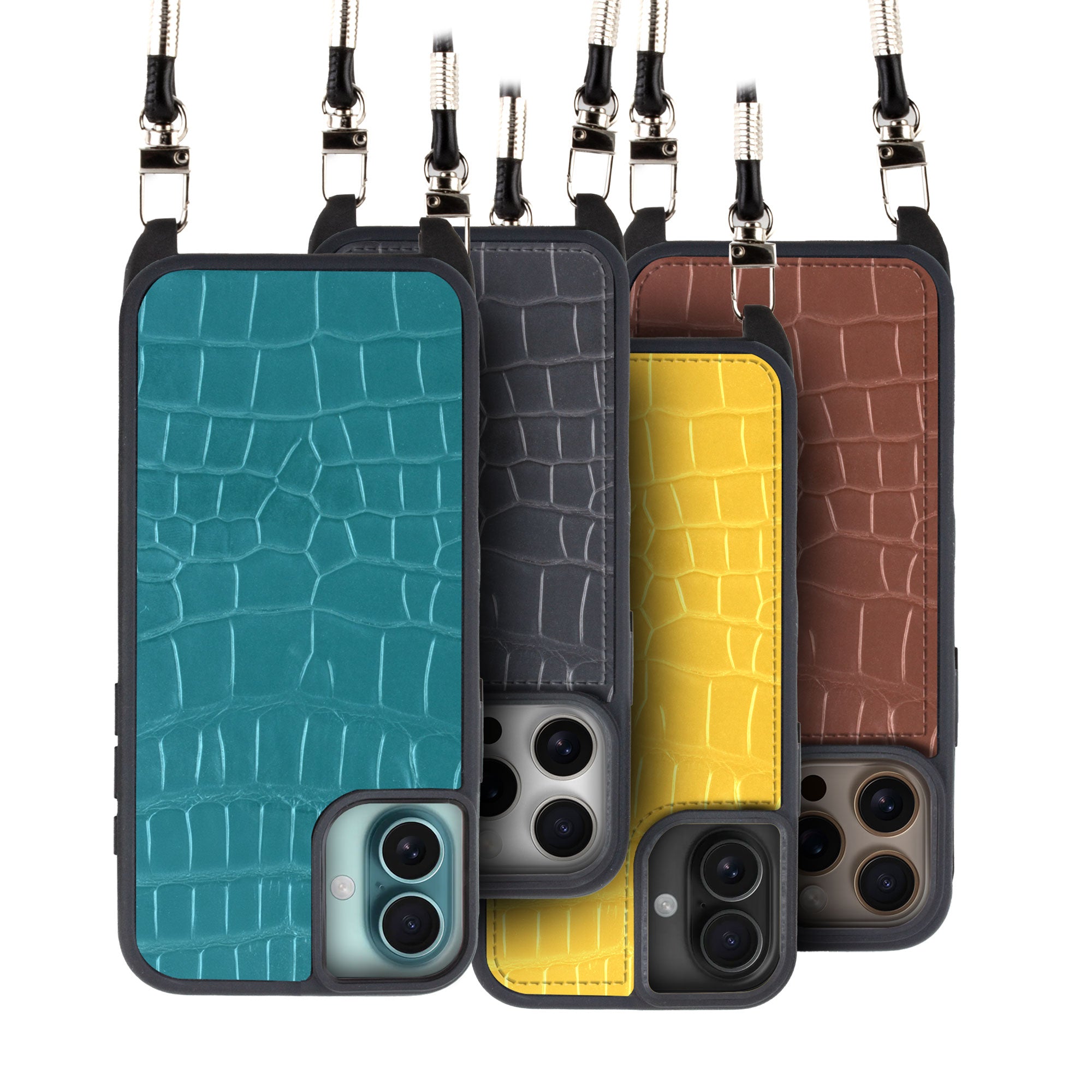 Coque "Crossbody" cuir pour iPhone 16 ( Tous modèles ) - Alligator