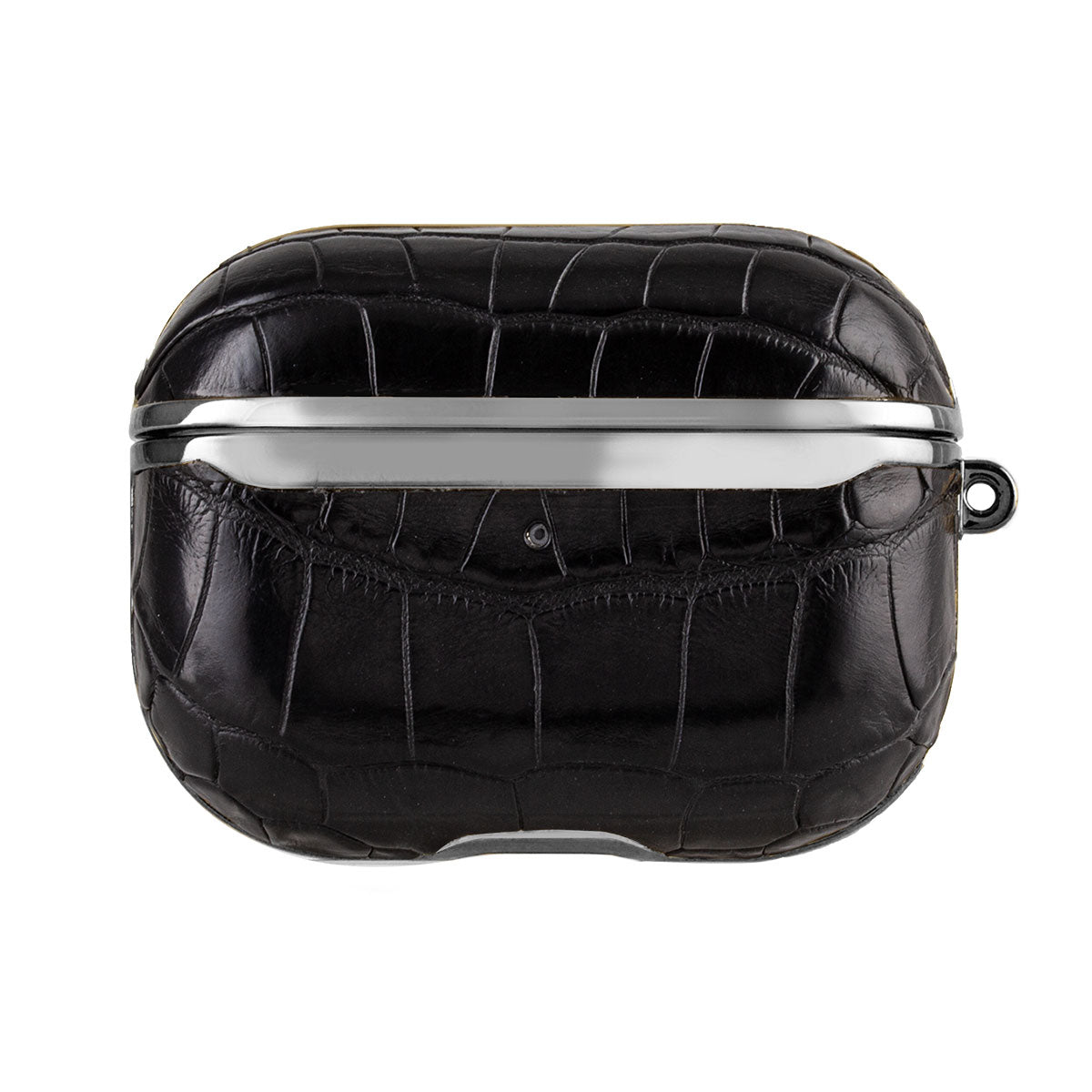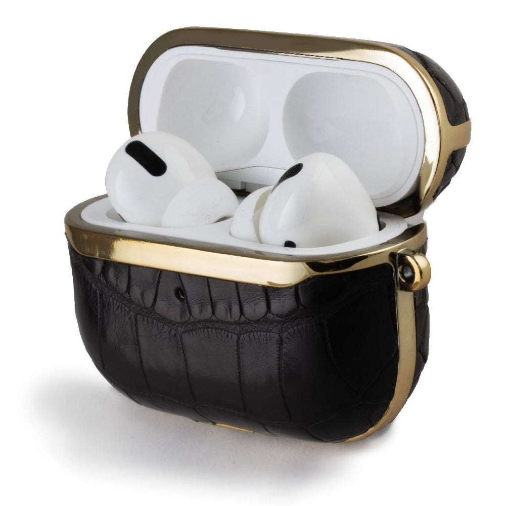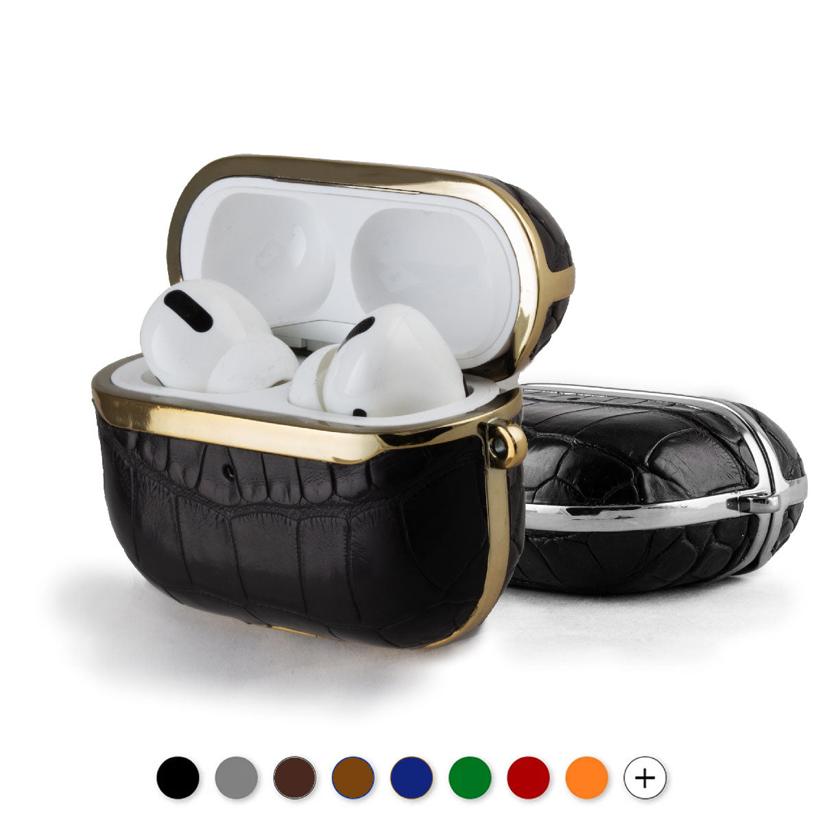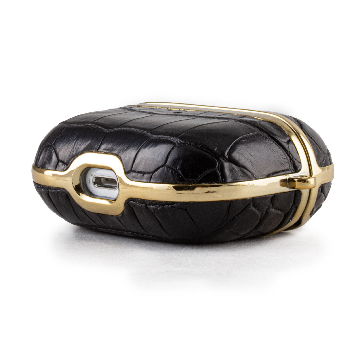 Etui pour Airpods Apple gainés en cuir d'alligator mat. Made in France, intégralement gainés par notre équipe d'artisans maroquiniers.