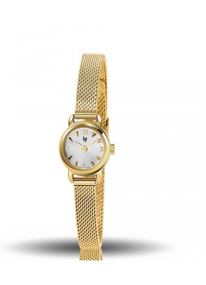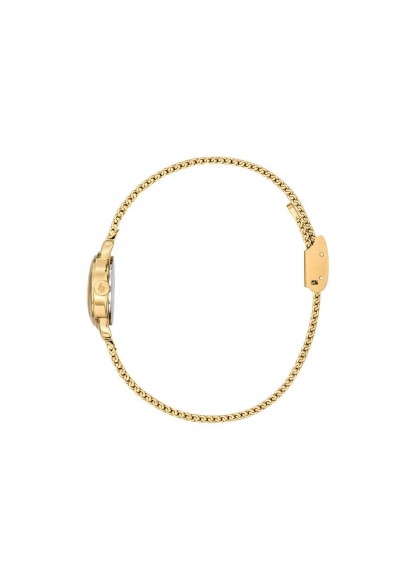 acier 316 L doré poli, diamètre 18.5 mm, épaisseur (verre inclus) 7.26 mm, fond acier