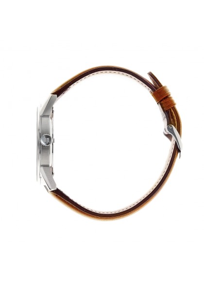 cuir vachette lisse marron clair surpiqures crème - 20 mm