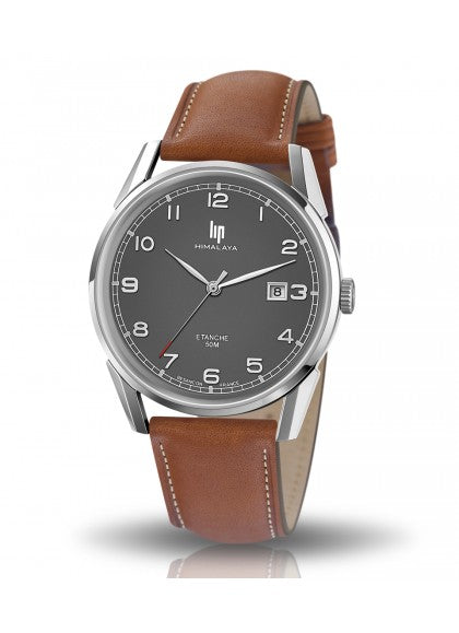 gris anthracite mat avec index chiffres arabes blancs en relief, aiguilles blanches, date à 3h