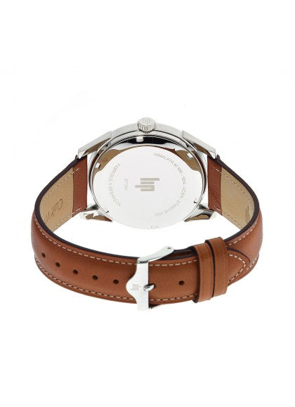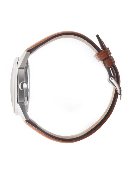 cuir marron vachette lisse, coutures blanches - 20 mm