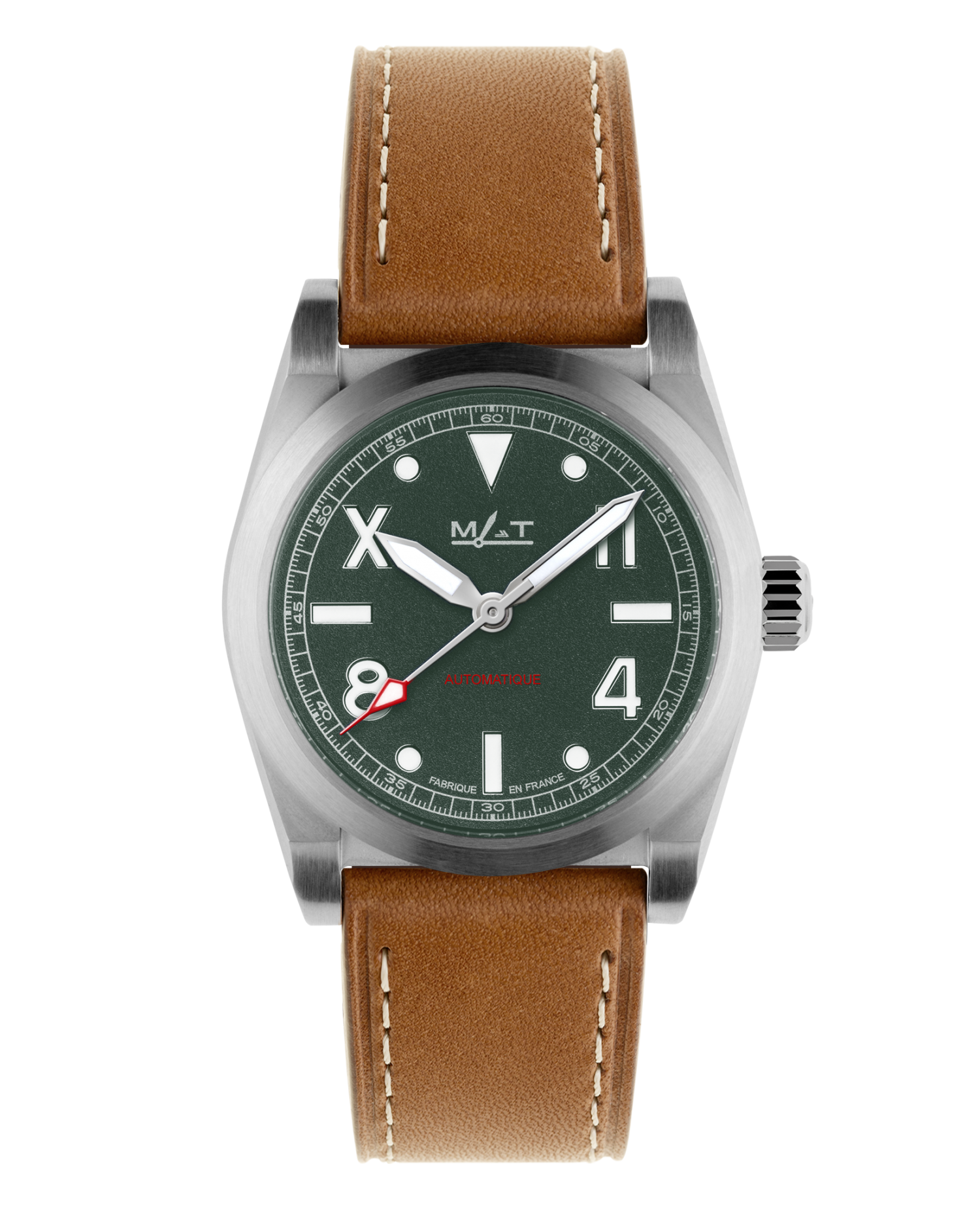 La montre d’Etat-major sera parfaite sous la manche d’un haut gradé militaire ou d’un homme de son temps aimant les beaux objets. De forme tonneau, étanche à 100 mètres, discrète mais lisible, raffinée mais robuste, la CALIFORNIA GREEN est idéale pour préparer toutes les missions du quotidien. Les aiguilles et index du cadran sont traités avec une matière luminescente Super Luminova afin de garantir une lisibilité optimale en milieu aquatique ou de nuit.