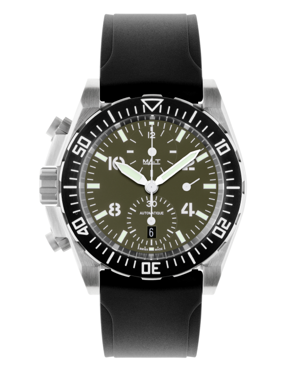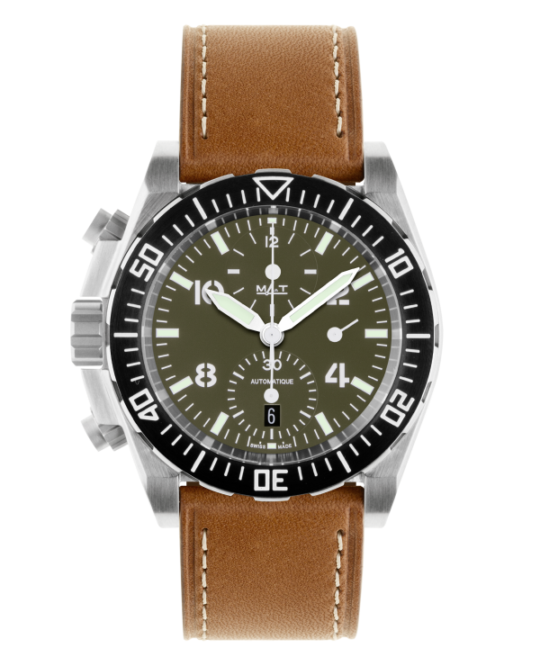 Le chronographe automatique « TERRE » est à l’horlogerie ce que les 4×4 sont à l’automobile: un gage de robustesse et un symbole inaliénable de fiabilité. Il possède un boîtier en acier, une lunette noire, des chiffres pochoirs, des index et des aiguilles en Superluminova, un indicateur de marche à 3 heures et un look de baroudeur inimitable. Pour les amoureux de grandes émotions.