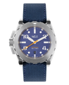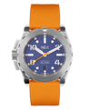 Livré avec 3 bracelets interchangeables :  1 caoutchouc véritable orange, 1 caoutchouc véritable navy blue avec boucle déployante et 1 bracelet canvas navy.