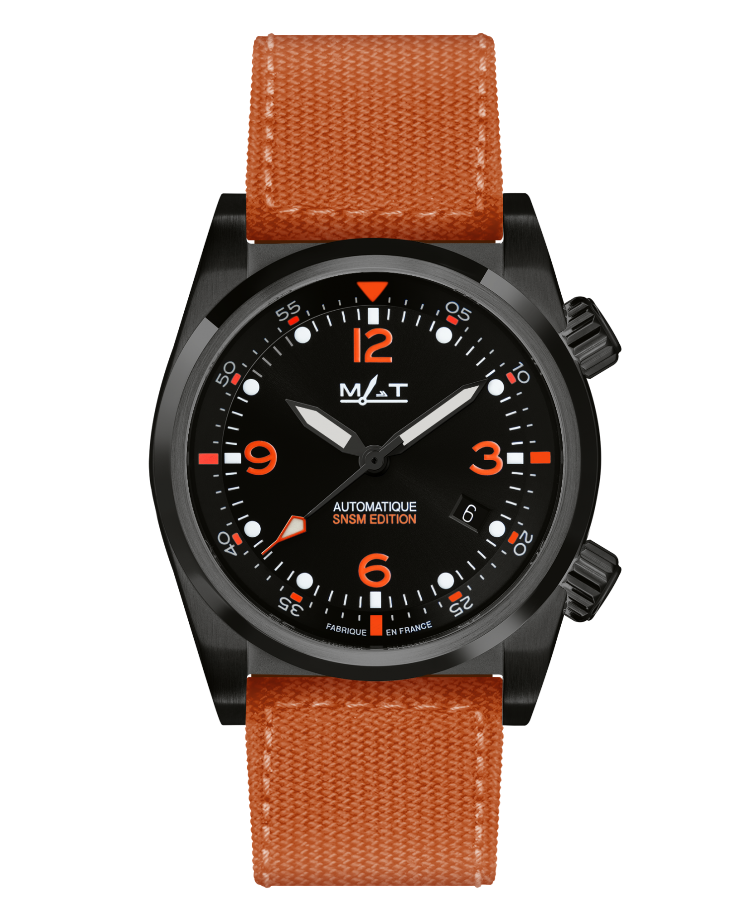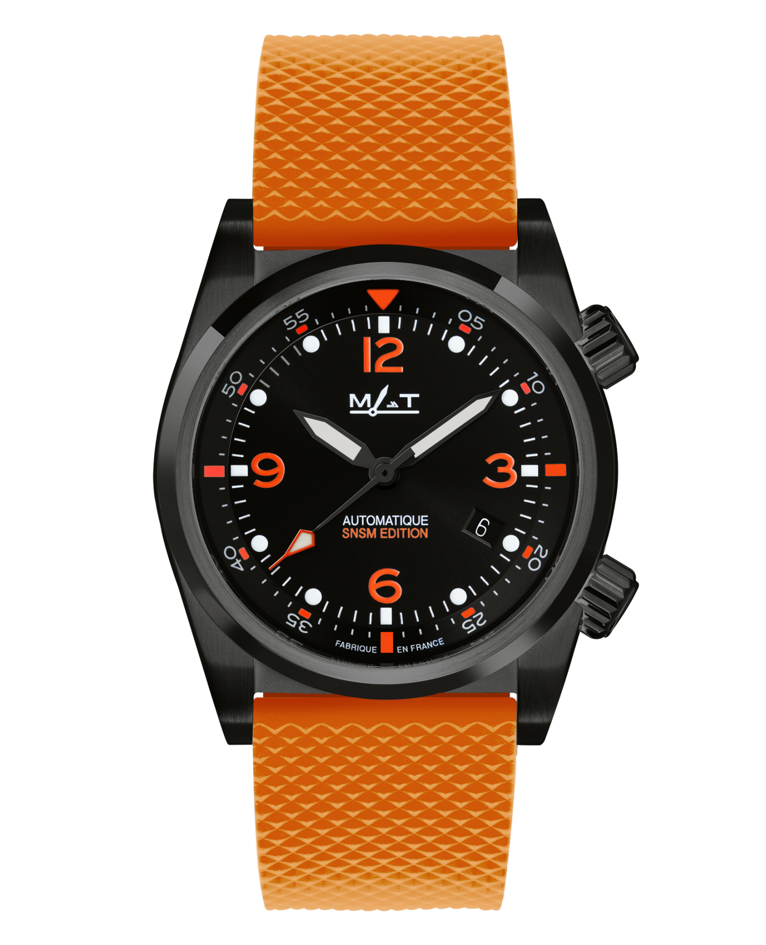 Cette montre aux couleurs de la SNSM se distingue par de fines touches orange pour une lisibilité optimale.