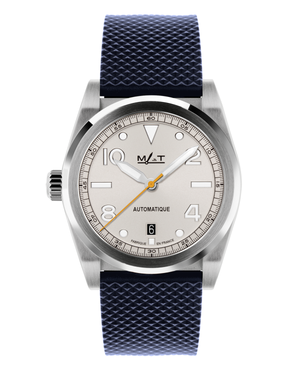 Suite au succès de la gamme Vintage en 39mm Matwatches a développé un modèle plus contemporain de diamètre 42.5mm. Avec ses dimensions plus généreuses et modernes, Matwatches en a profité pour renforcer son verre saphir bombé d’une épaisseur de 2.8mm au lieu du verre saphir traditionnel de 2mm de sa montre État-Major. Intelligemment dessinées, ses cornes courtes offrent un maximum de confort Les nouvelles caractéristiques de cette montre en font une montre mixte. A la fois sportive et classique, elle est aussi élégante que fiable, et convient parfaitement à tous les poignets. Elle peut aussi se prévaloir d’être « LA » montre de toutes les situations, puisqu’elle est absolument tout-terrain. En cela, elle possède tous les codes d’un nouveau classique.