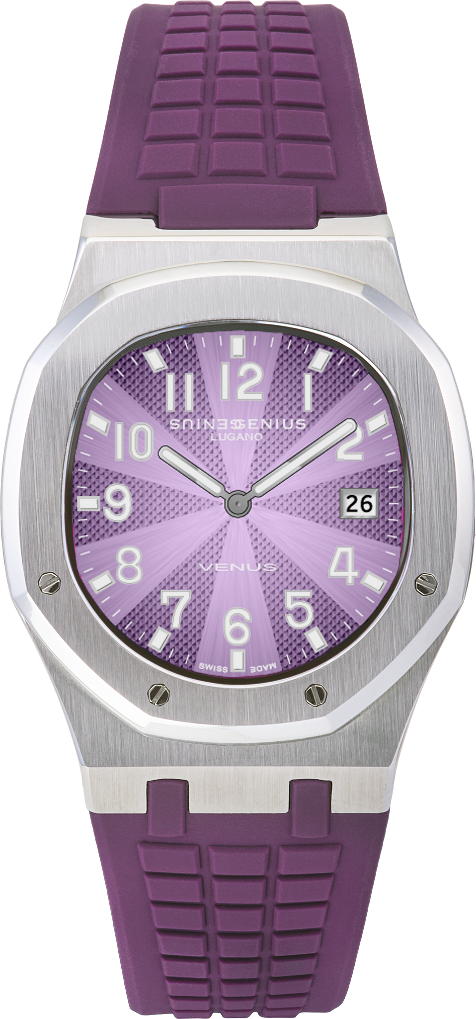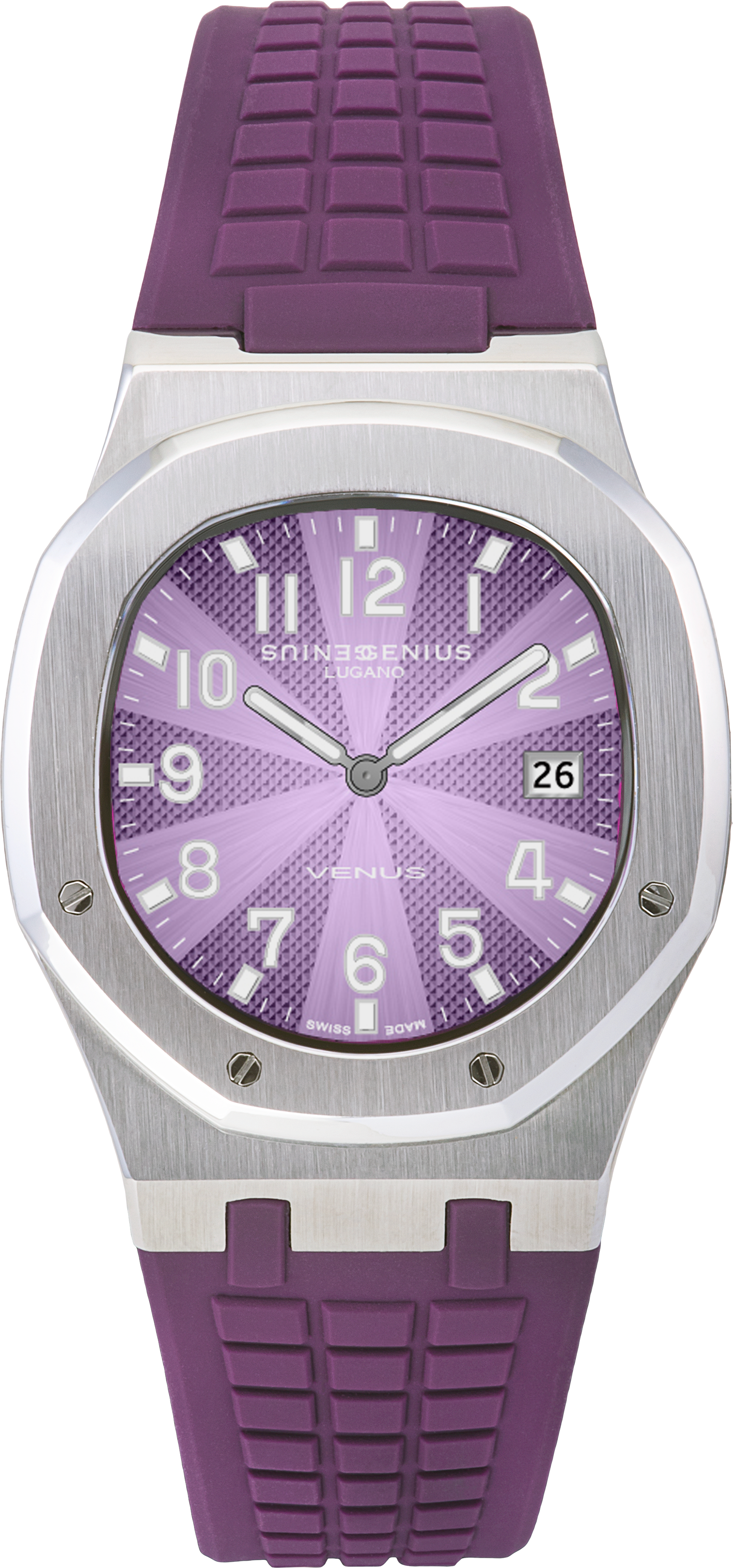 VIOLET, CHIFFRES RADIAL GUILLOCHE' ET SUNRAY AVEC INDEX/DATE