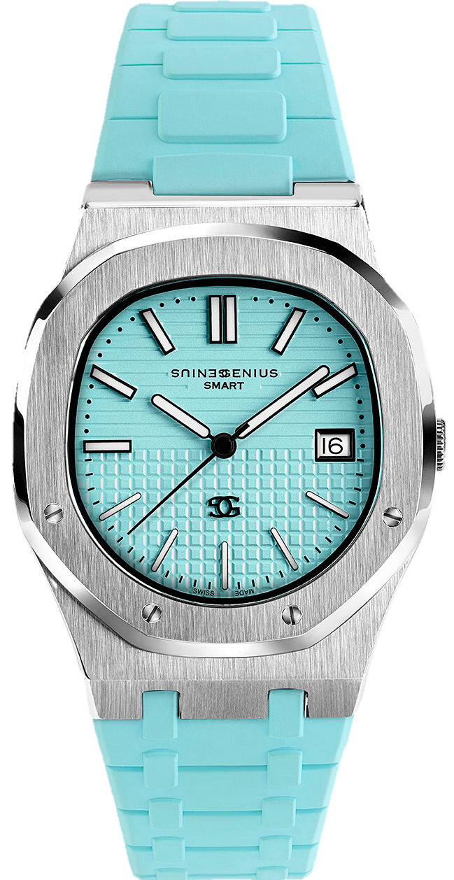 La deuxième création, la montre Genius Smart, est une évolution des collections précédentes, car nous voulions concevoir une montre de sport avec une nouvelle philosophie. La montre Genius Smart est livrée avec un mouvement à quartz suisse ayant le même design et la même idée que l'Hommage mais avec un bracelet en caoutchouc.
