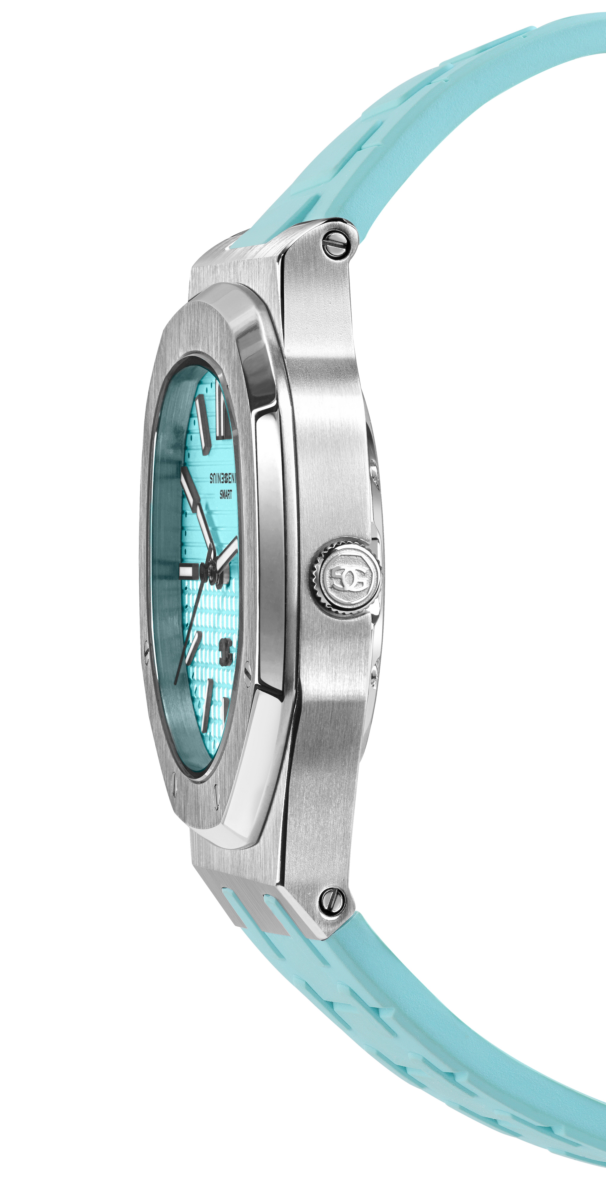 Il existe également une version Sunray dans la collection Smart qui possède un cadran brillant et un bracelet en caoutchouc qui suit uniquement le bracelet Genius aqua. La collection Smart est très intéressante et ouvre les portes de par son confort au poignet (boîtier léger et plus fin grâce au mouvement à quartz) et son prix de vente plus abordable.