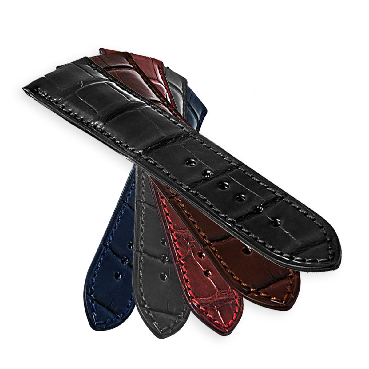 Omega - Bracelet de montre cuir premium - Alligator / crocodile (noir, marron foncé, marron moyen, gris, bleu)