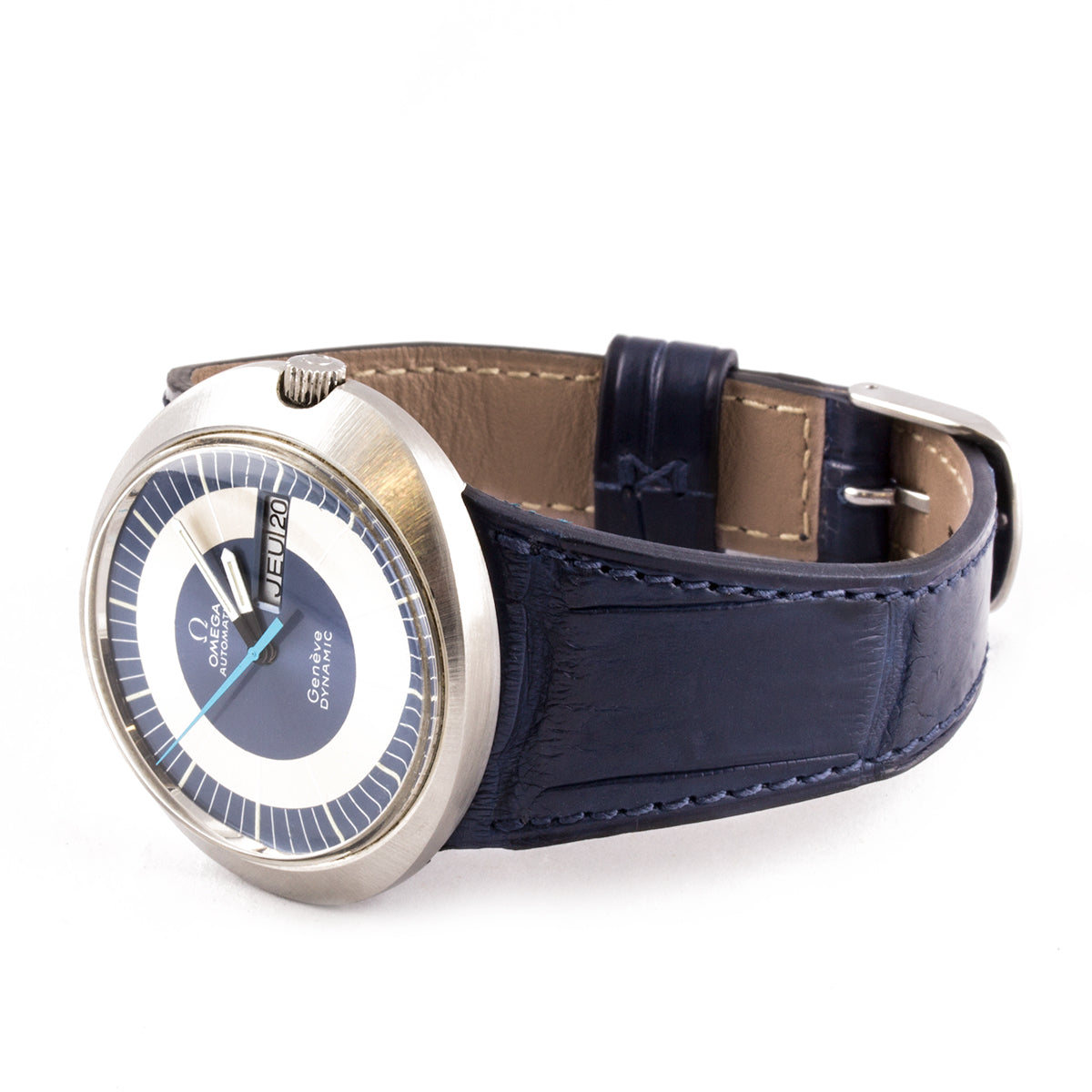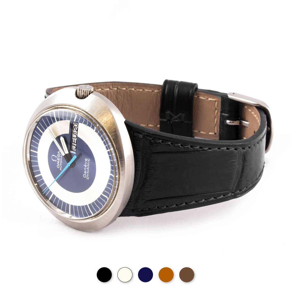 Omega Dynamic - Bracelet-montre cuir qualité premium - Alligator / crocodile (noir, bleu marine, marron, marron camel, écru)
