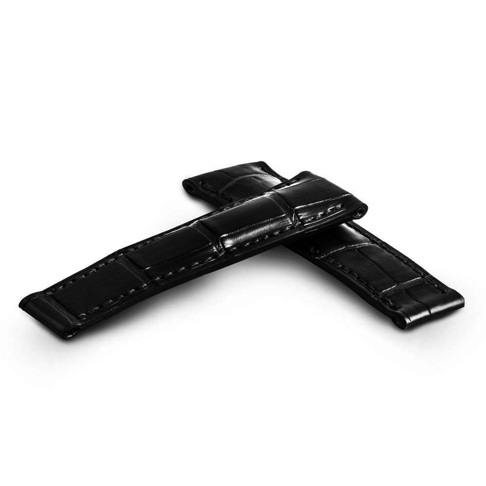 Bracelet de montre en alligator, spécialement conçu et étudié pour sublimer votre montre Rolex Daytona or. Couture ton sur ton. Epaisseur bombé 5mm. Doublure en veau caoutchouté noir.