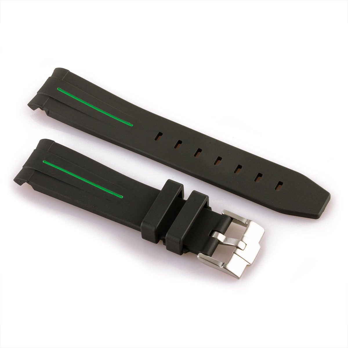 Rolex – Bracelet montre intégré caoutchouc FKM avec boucle ardillon – Rubber noir à rayure (bleu, vert, rouge...)