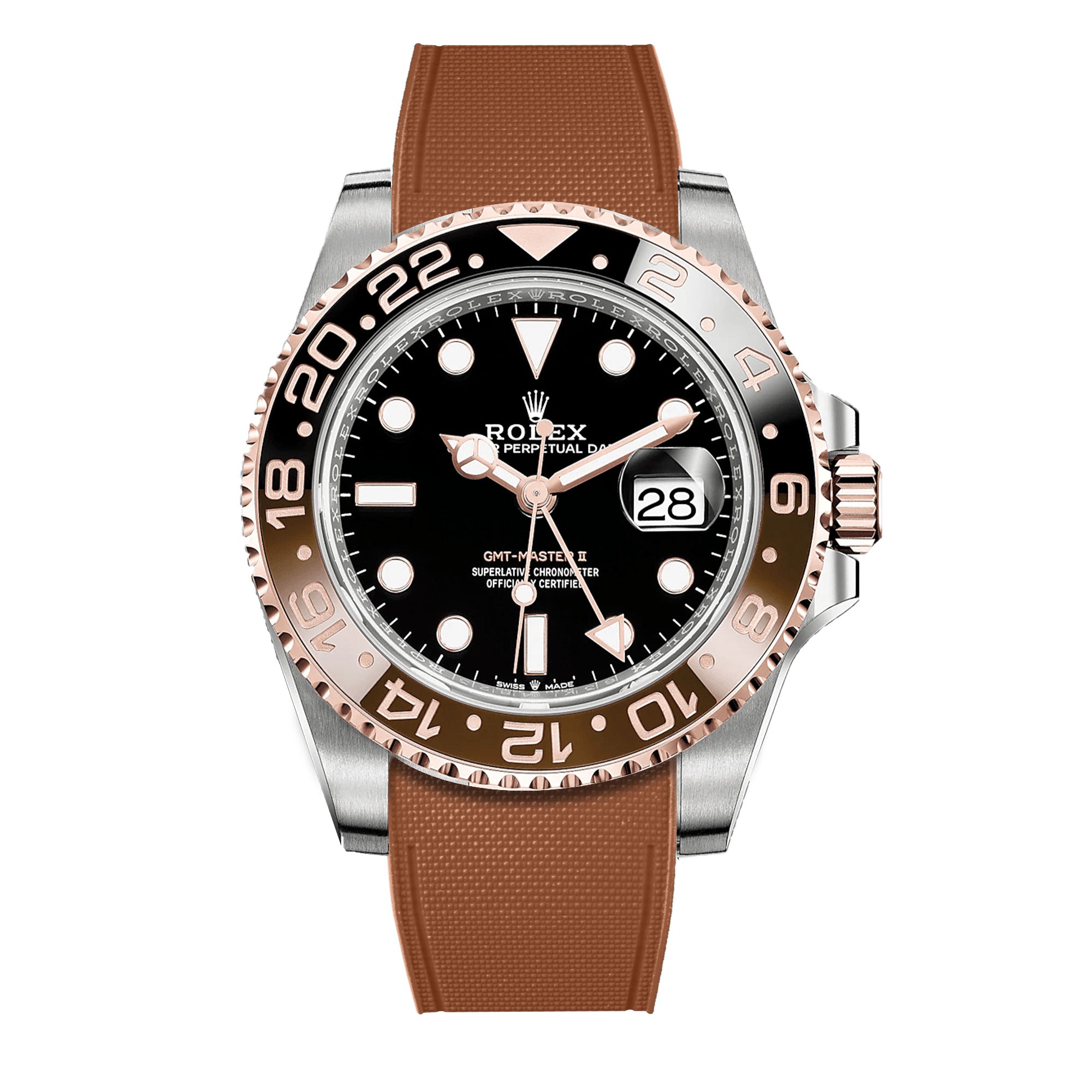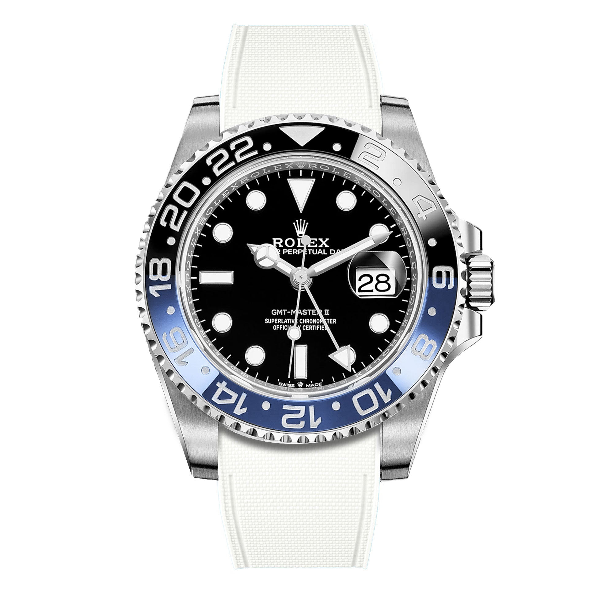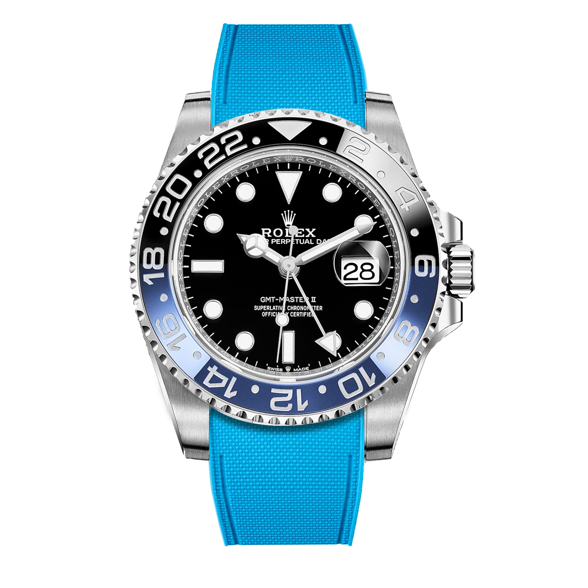 Bracelet-montre rubber intégré « R Strap » en caoutchouc haute densité, hypoallergénique, anti transpiration, étanche, spécialement conçu et étudié pour s'intégrer à la carrure de votre montre Rolex GMT Master II et son bracelet Oyster