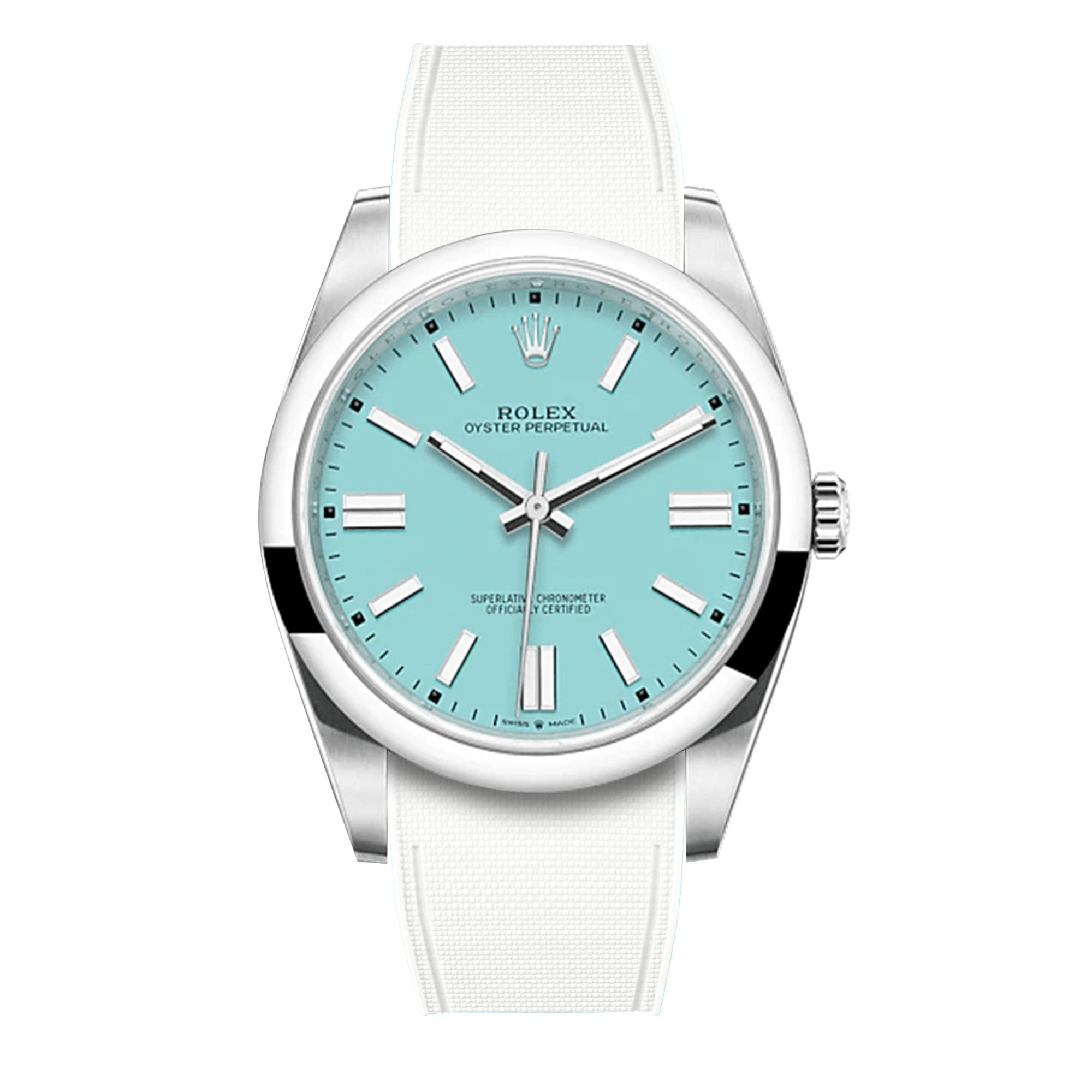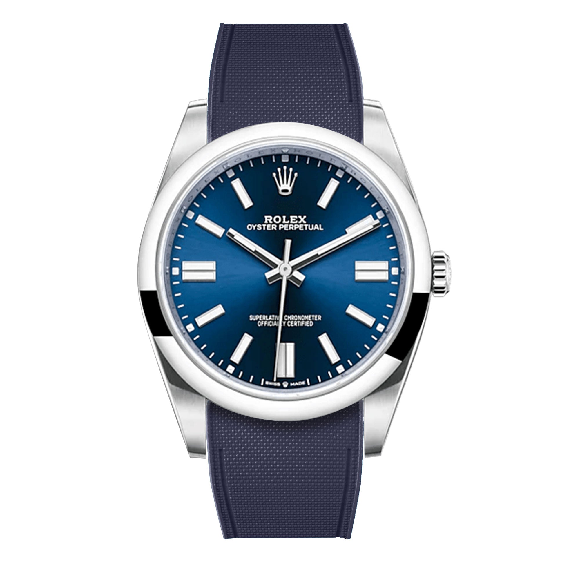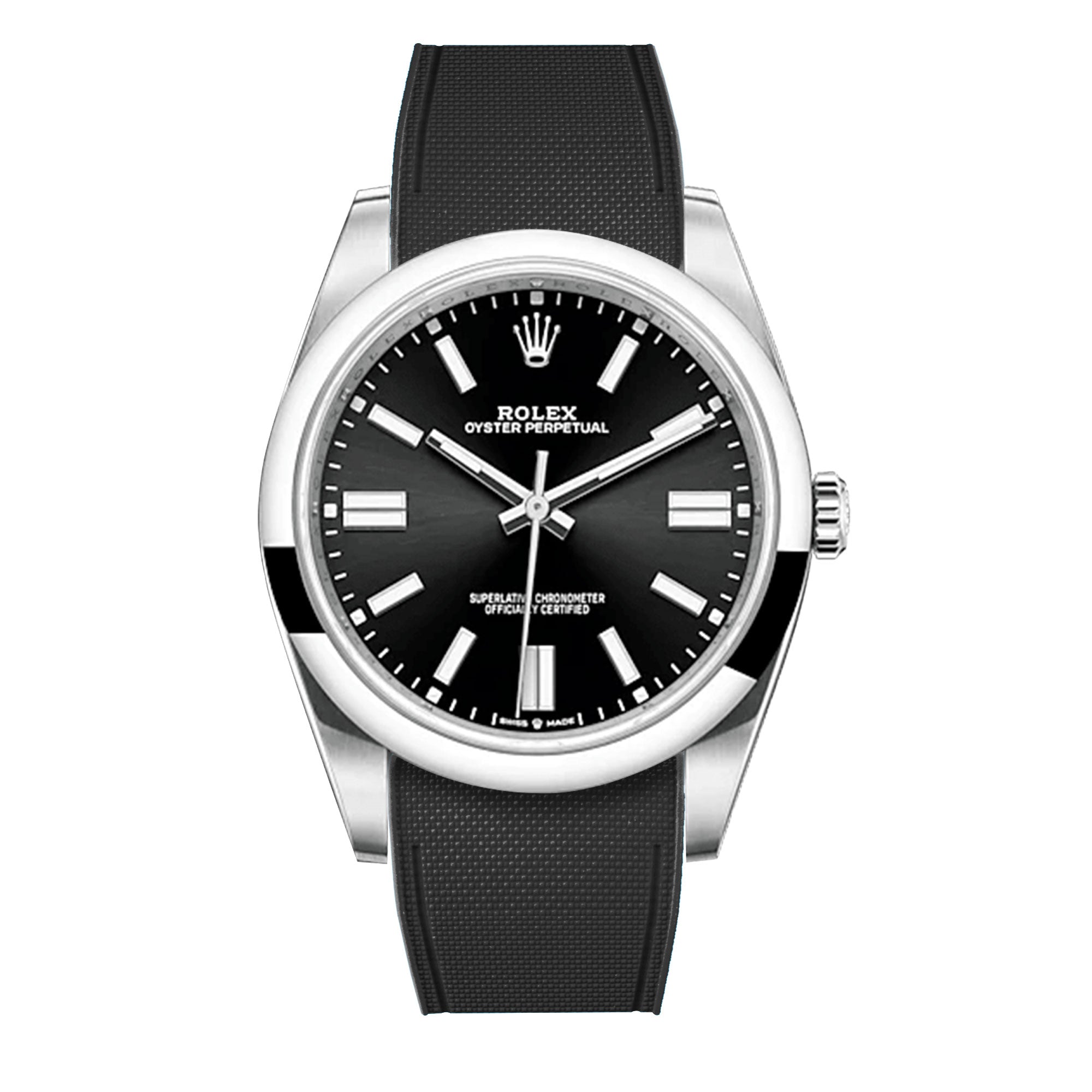 Bracelet-montre rubber intégré « R Strap » en caoutchouc haute densité, hypoallergénique, anti transpiration, étanche, spécialement conçu et étudié pour s'intégrer à la carrure de votre montre Rolex Oyster Perpetual 41mm.