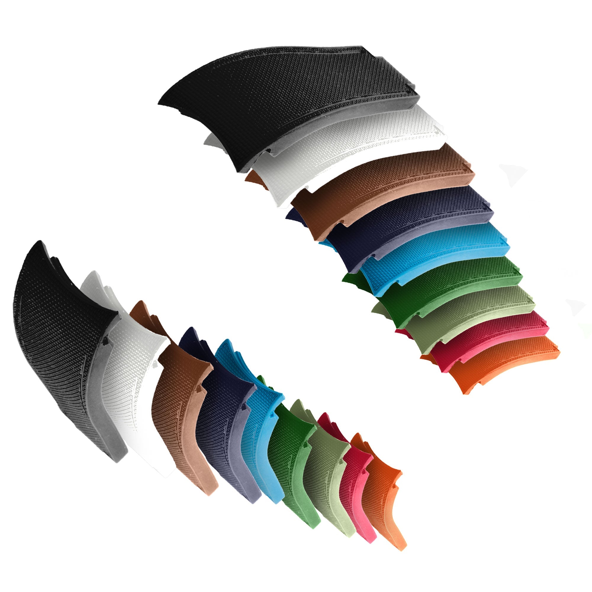 Noir, bleu, marron, vert, kaki, rouge, orange, blanc.