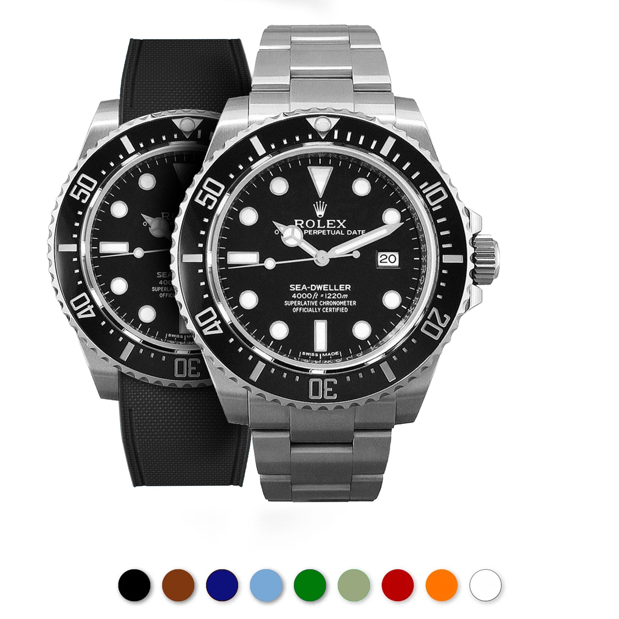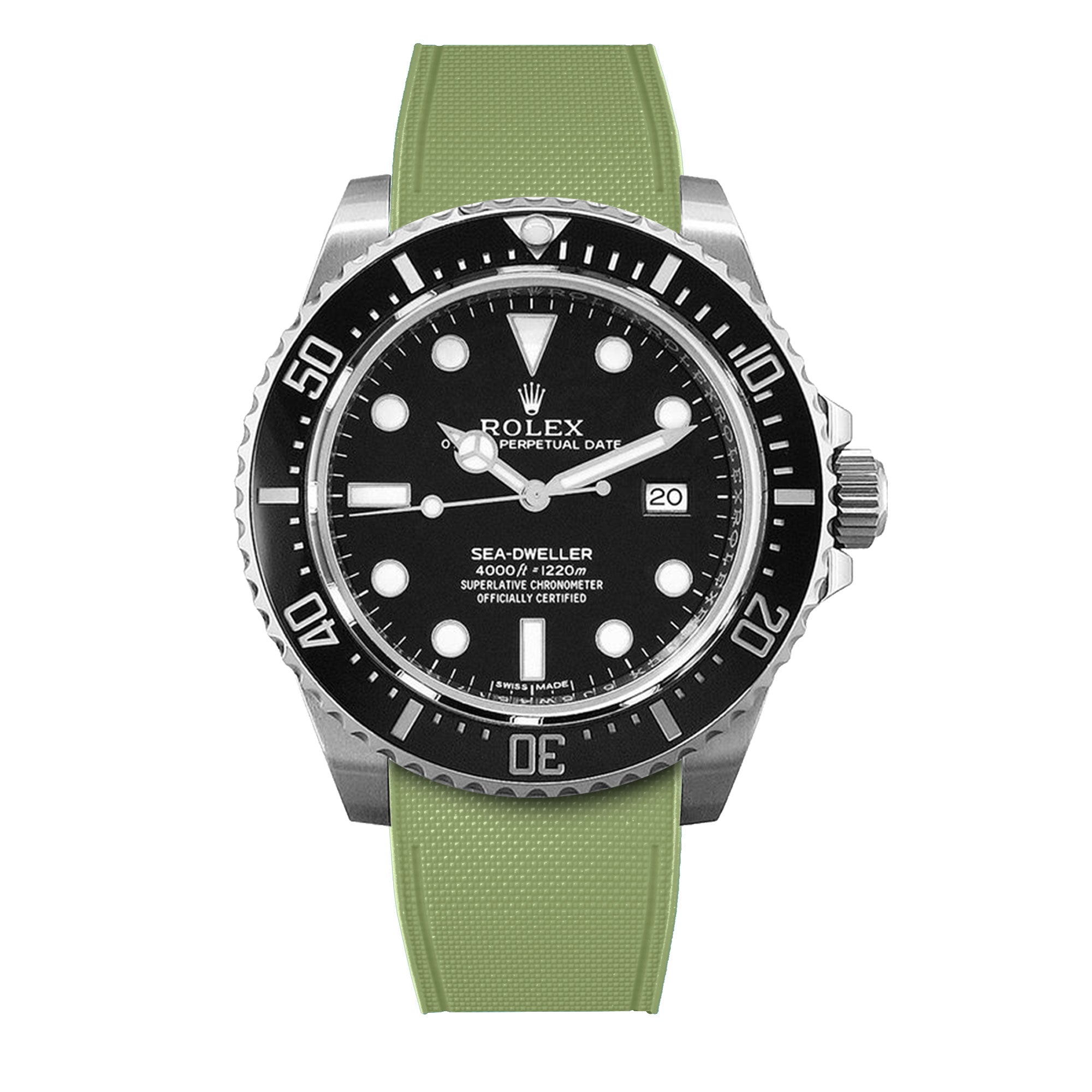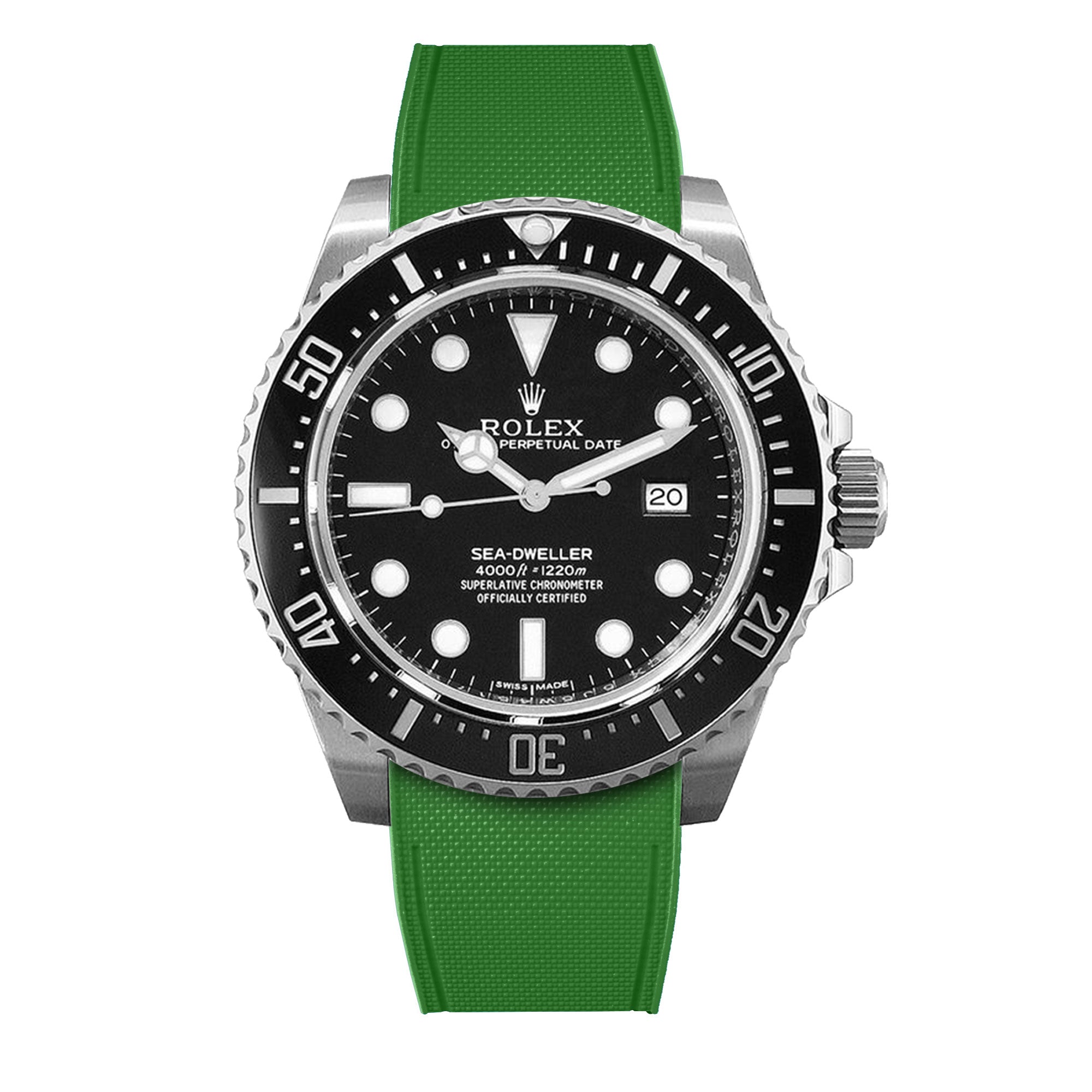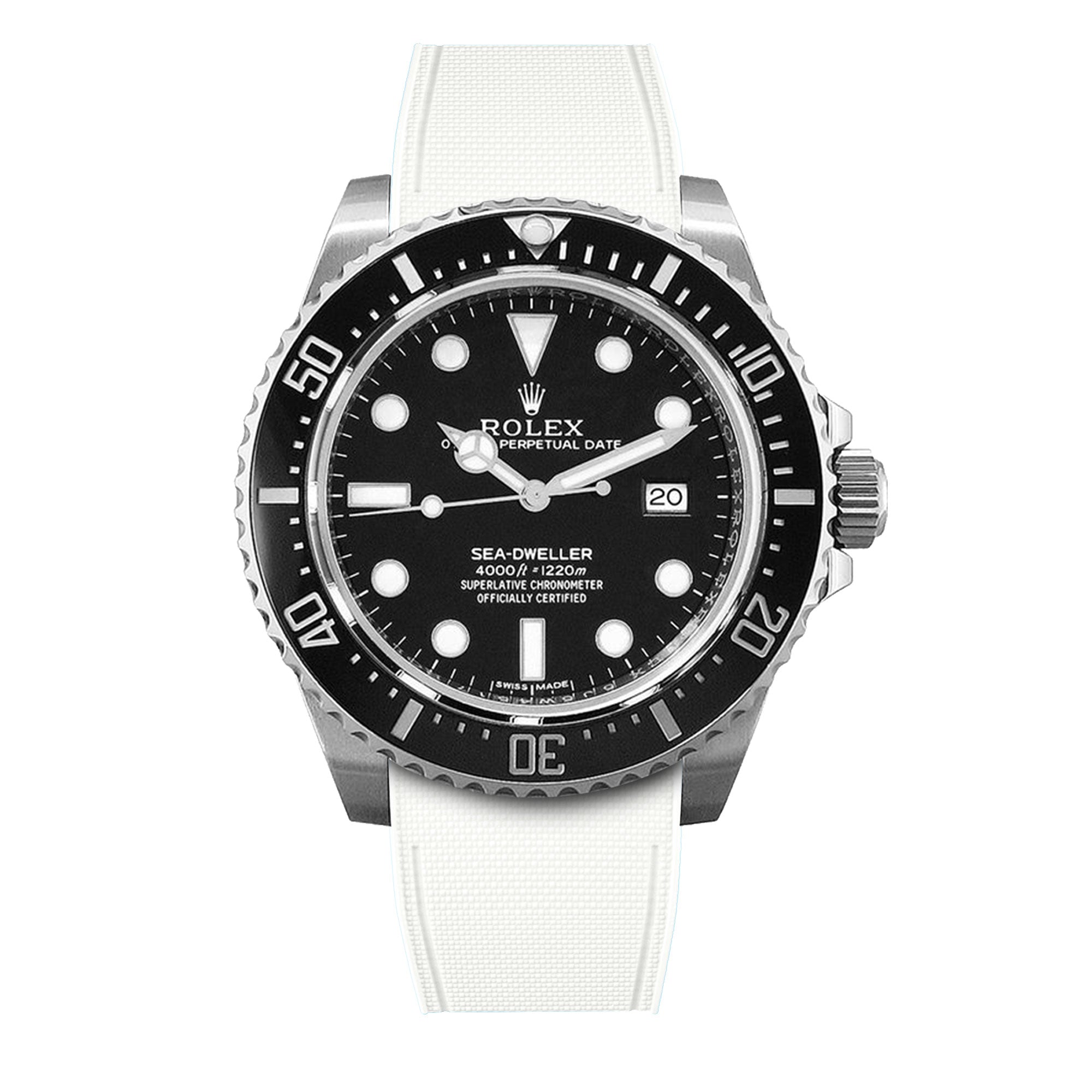 Bracelet-montre rubber intégré « R Strap » en caoutchouc haute densité, hypoallergénique, anti transpiration, étanche, spécialement conçu et étudié pour s'intégrer à la carrure de votre montre Rolex Sea Dweller 4000, 40mm ceramique 116600 & boucle glidelock.