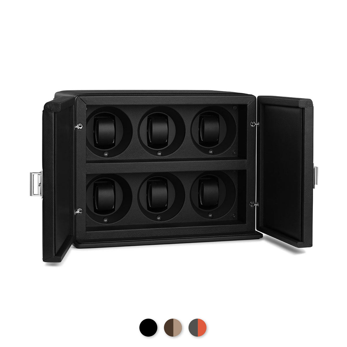 Le cabinet remontoirs pour montres automatiques Rotore 6 Scatola del Tempo constitue un sanctuaire élégant et raffiné pour vos garde-temps. Capable d'accueillir jusqu'à 6 montres, il assure le remontage automatiques de vos précieuses montres lorsque vous ne les portez pas. Fabriqué à la main en Italie.