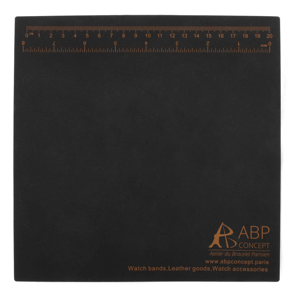Tapis de changement de bracelets ABP en matière rubber afin de faciliter les manipulations, avec graduations en cm et inch.