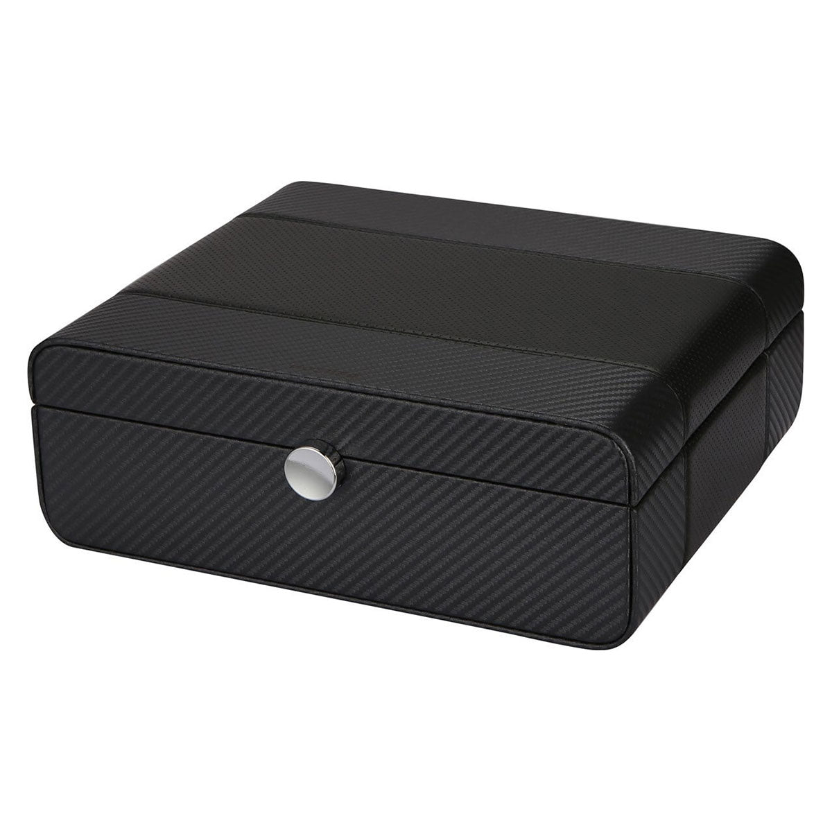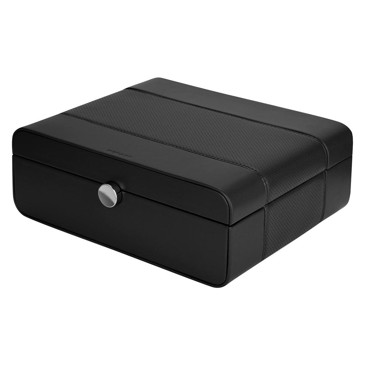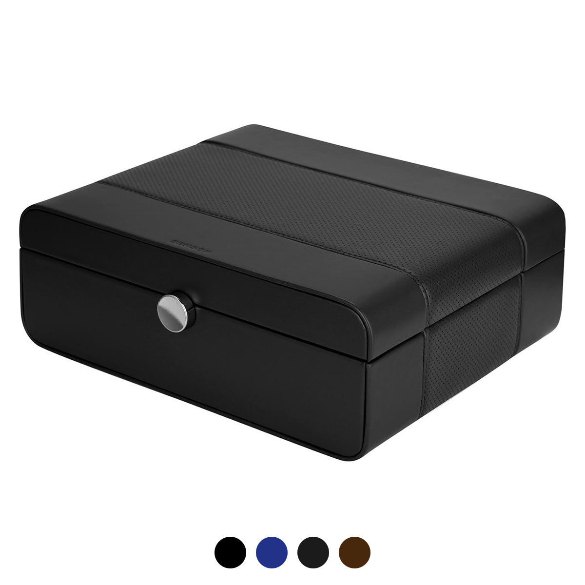 These watch boxes are made of leather and available in the colors black, dark brown, blue and carbon fiber. This Benson Black Series LWB.8 Black watch box is suitable for storing 8 watches. The inside of the watch box is covered with soft fabric for optimal protection of the watches. The lock on the front ensures that you can also close the watch box. The beautiful finish is reflected in the fine stitching and logo stamped in the leather.