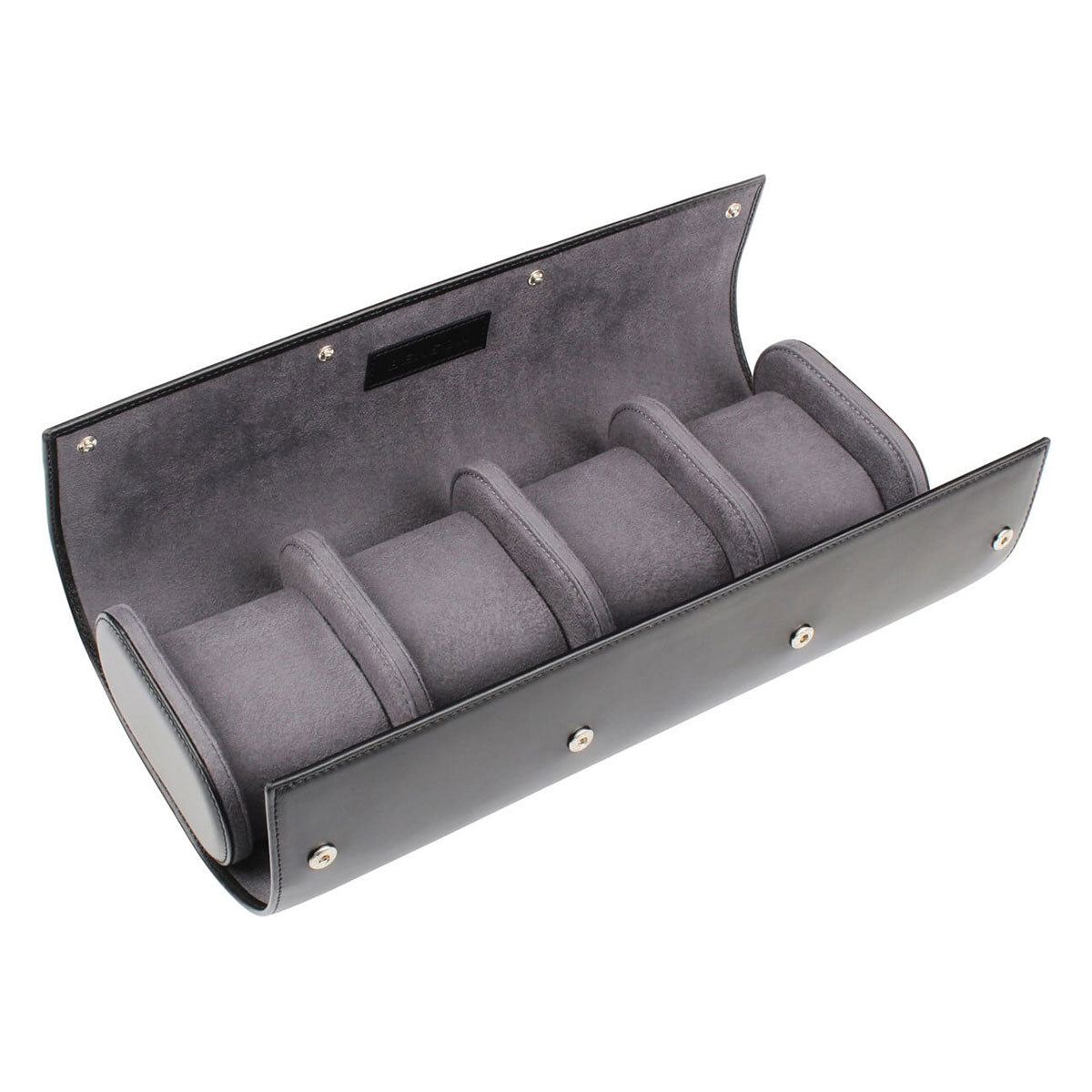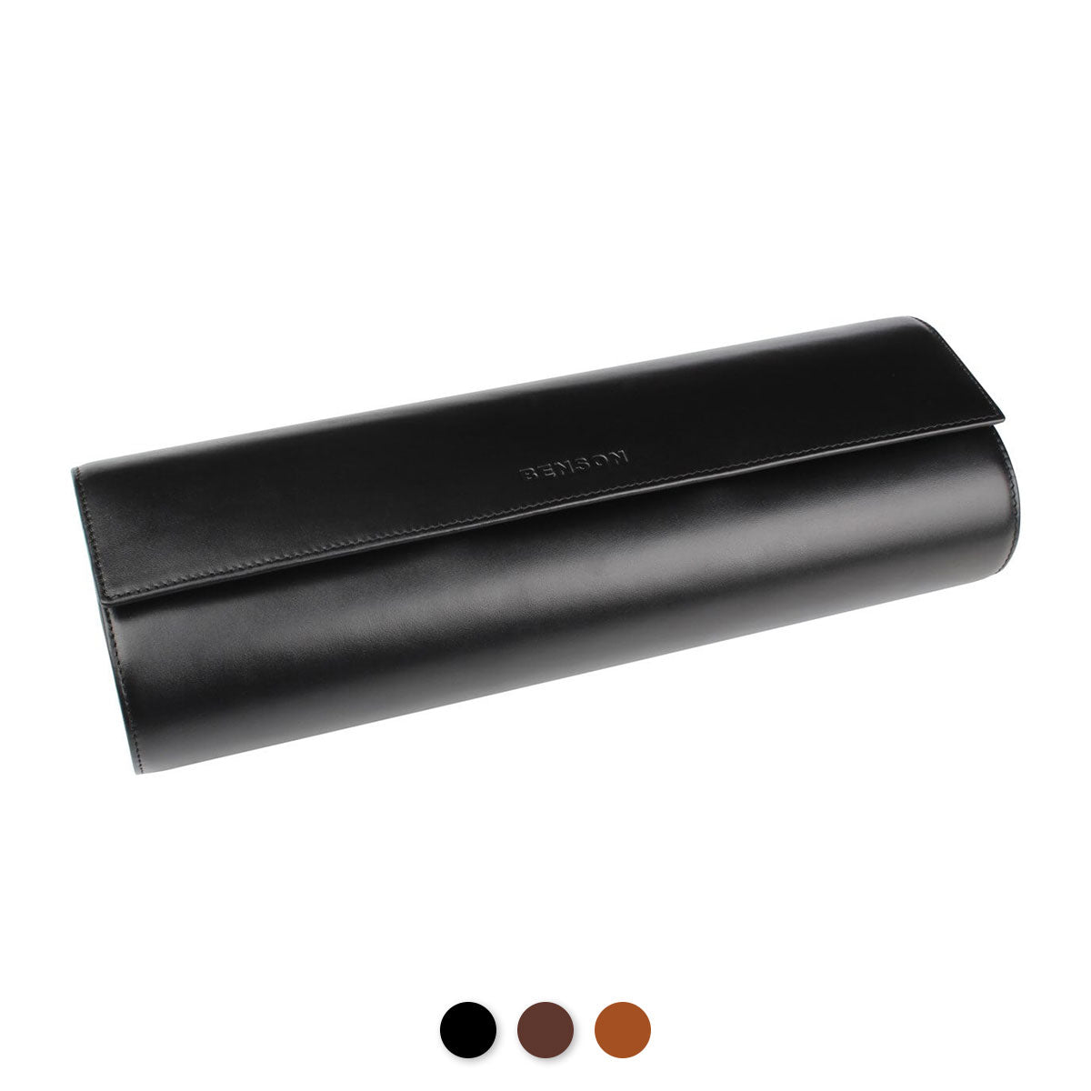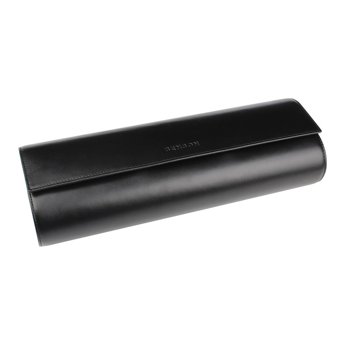 The new Benson Black Series watch roll models are handcrafted from the highest quality Italian leather. The pure craftsmanship is reflected in the beautiful finish of the fine materials and the matching stitching. The inside of the Benson Black Series watch roll 4 Black is made of soft fabric for optimal protection of the watches.