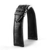 Genuine alligator leather watch strap. Black rubberized calf lining. 4,5mm (0.18 inch) rounded thickness at the watch, tone on tone stitching.