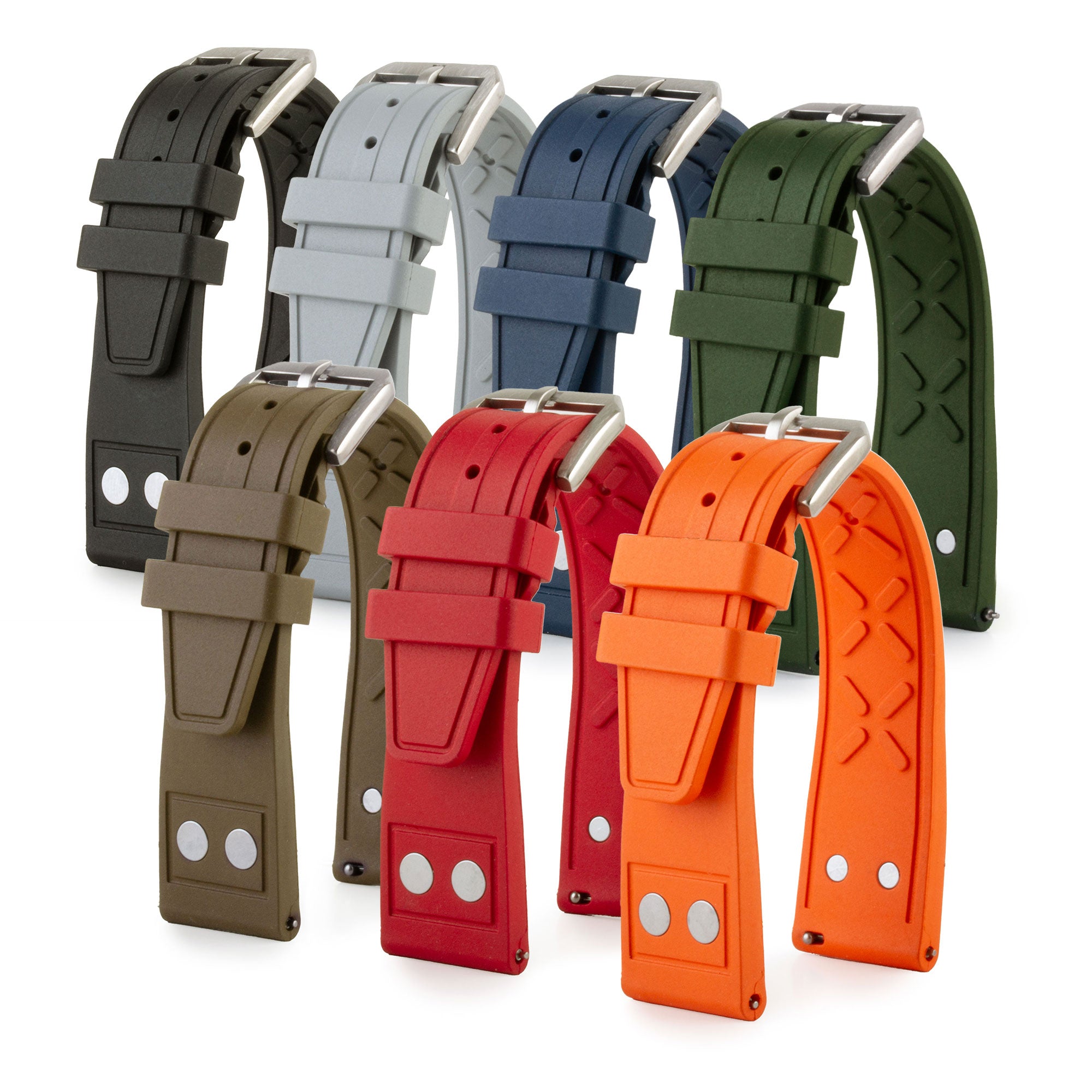 IWC Pilot type rubberized watch strap with rivets - Rubber (black, grey, blue, green, brown, red, orange)