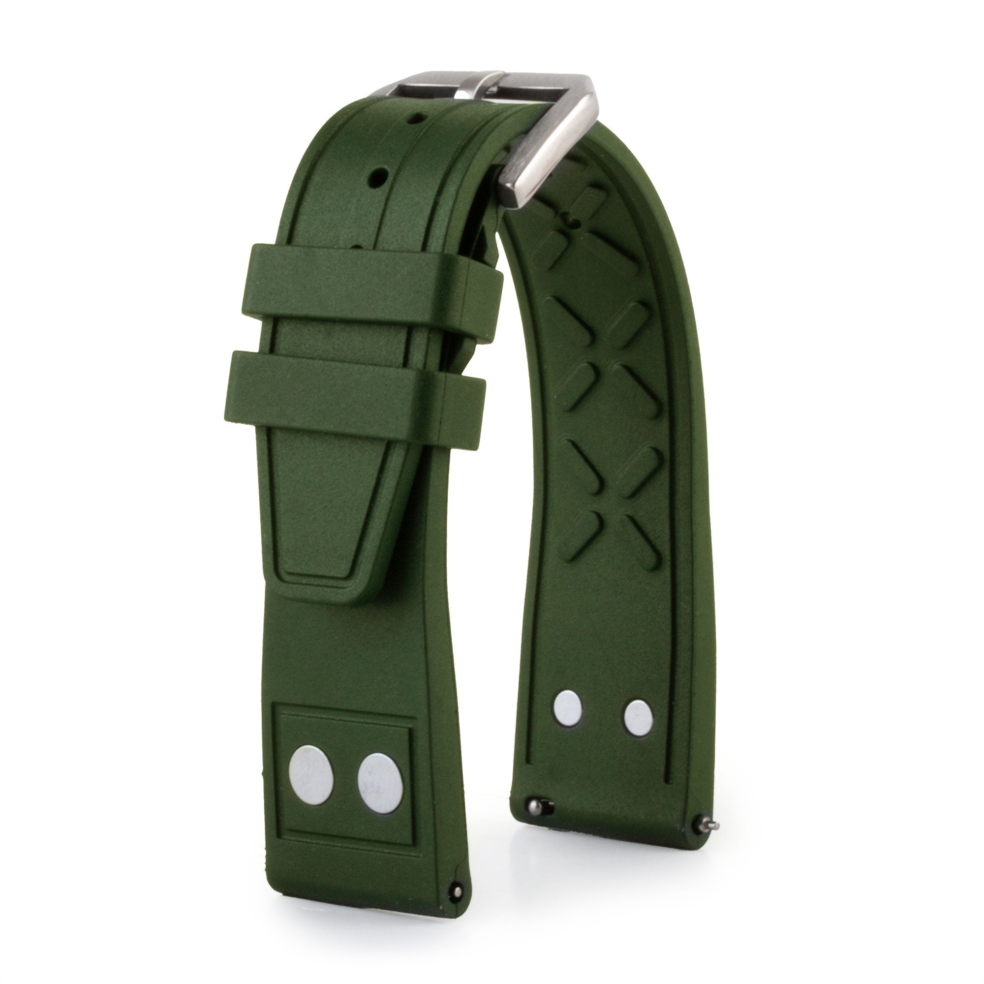 IWC Pilot type rubberized watch strap with rivets - Rubber (black, grey, blue, green, brown...)