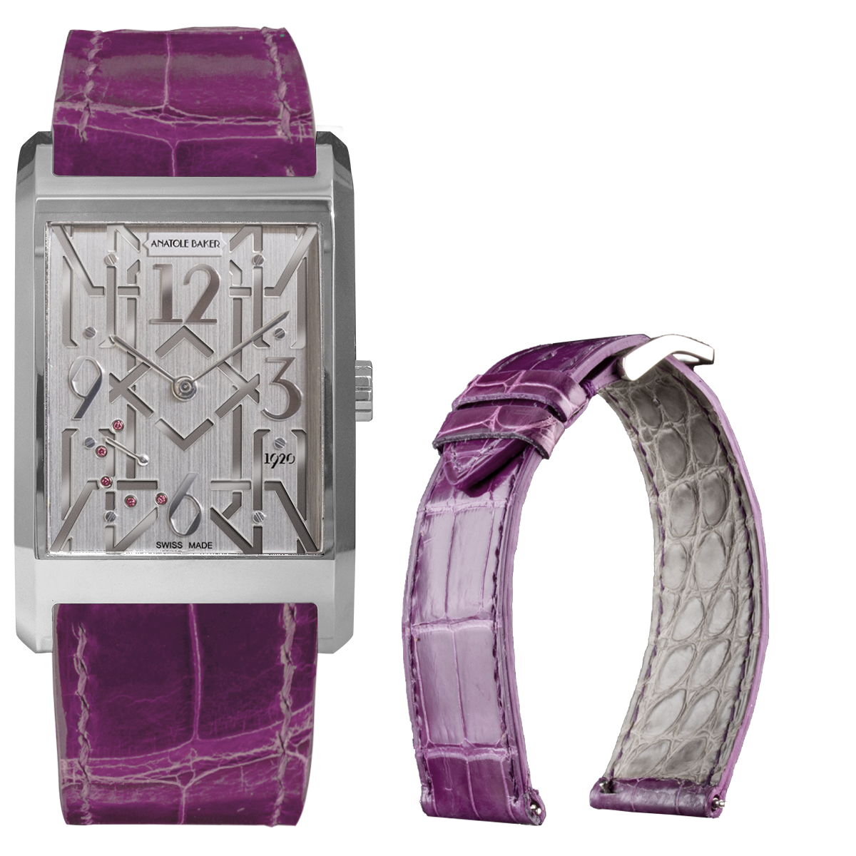Premium leather watch band - Anatole Baker - Pink glossy alligator